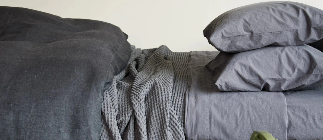 Washed, dyed organic cotton percale sheets. ANTON is a soft-to-the-touch, crisp, classic percale weave, dyed in small batches and pre-washed for an easy, sink-into-bed modern style. Medium weight, breathable, fresh and unstudied. A smooth, non-fussy collection of natural organic cotton bedding, cool, soothing and relaxed to the touch. Flat sheet has a 4″ hem at the top.