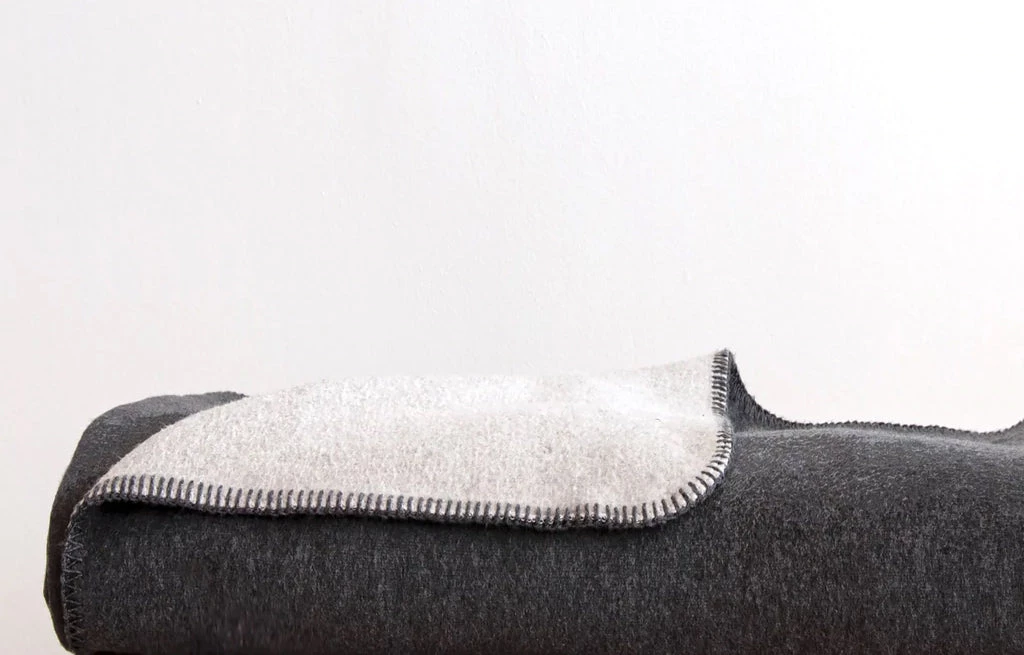 OLIVER is a fully reversible, 100% cotton blanket. The blanket has a very soft hand and gentle drape. A real AREA classic, the colors make this work in so many different rooms and will go with all your grey and beige options. Blanket stitched edges and machine washable.