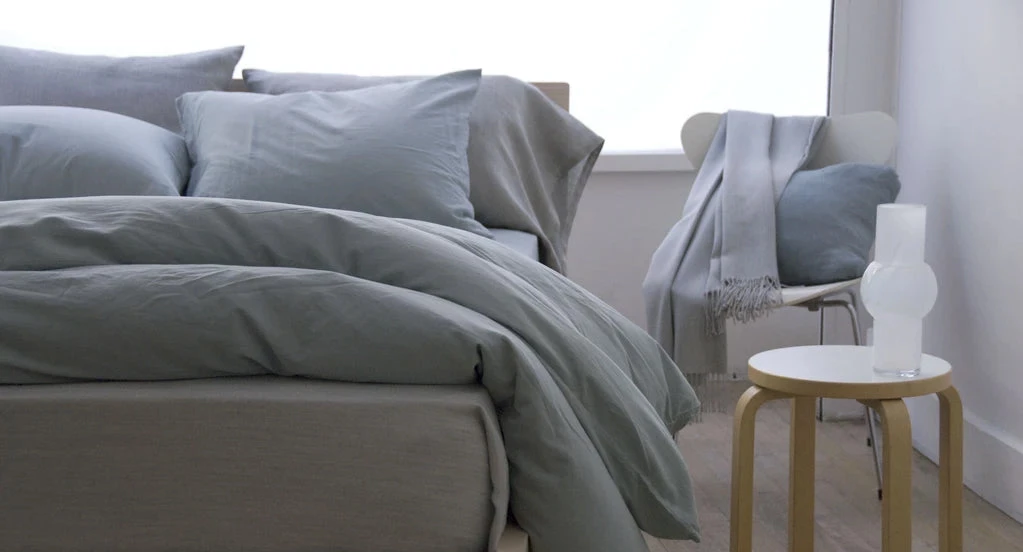 This extra-fine cotton sateen has been dyed and washed for a lived-in, relaxed style, and is very, very soft – what you see is what you get, even after you’ve washed it again. Celeste is blue with a dash of green and grey. Porcelain is pale warm grey–white if it woke up on the moon. Powder is a perfect mix of peach and pink, a romantic shade that works for most interiors, especially with greys and browns. Slate is deep, dark nocturnal grey. Available in full, queen, king duvet covers, sheets, and frenchback cases. Pillowcases sold in pairs.