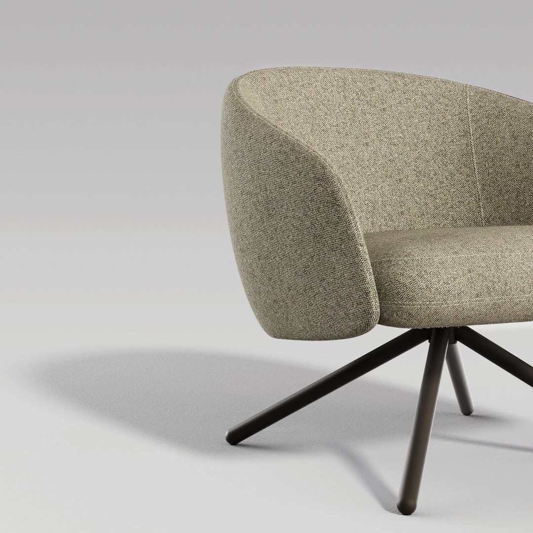 Bonny Chair Swivel | By Alp Nuhoglu. Created as a refined and comfortable alternative for living spaces, Bonny combines simplicity and integrity in its form. Designed by Alp Nuhoğlu, Bonny armchair is enough to make a space elegant alone. Bonny armchair, designed by Alp Nuhoğlu, is a product that is sufficient to create elegance in the space with its simplicity. The armrests and backrest that generate a solid oval form also visualize the feeling of comfort beyond the experience with this detail. Made of polyurethane, this surface emphasizes the sculptural presence and also provides durability for long years of use. Bonny, contains functional details beneath its elegant design. With its swivel mechanism, the base is offered in metal or wood, easing the user to turn to different angles. With simplicity at the core of its design, Bonny armchair displays a strong stance in the space with its minimalism. Bonny can take place in a variety of spaces; like homes that focus on refined details in their interior design, private offices, hotel lounges, or waiting areas.