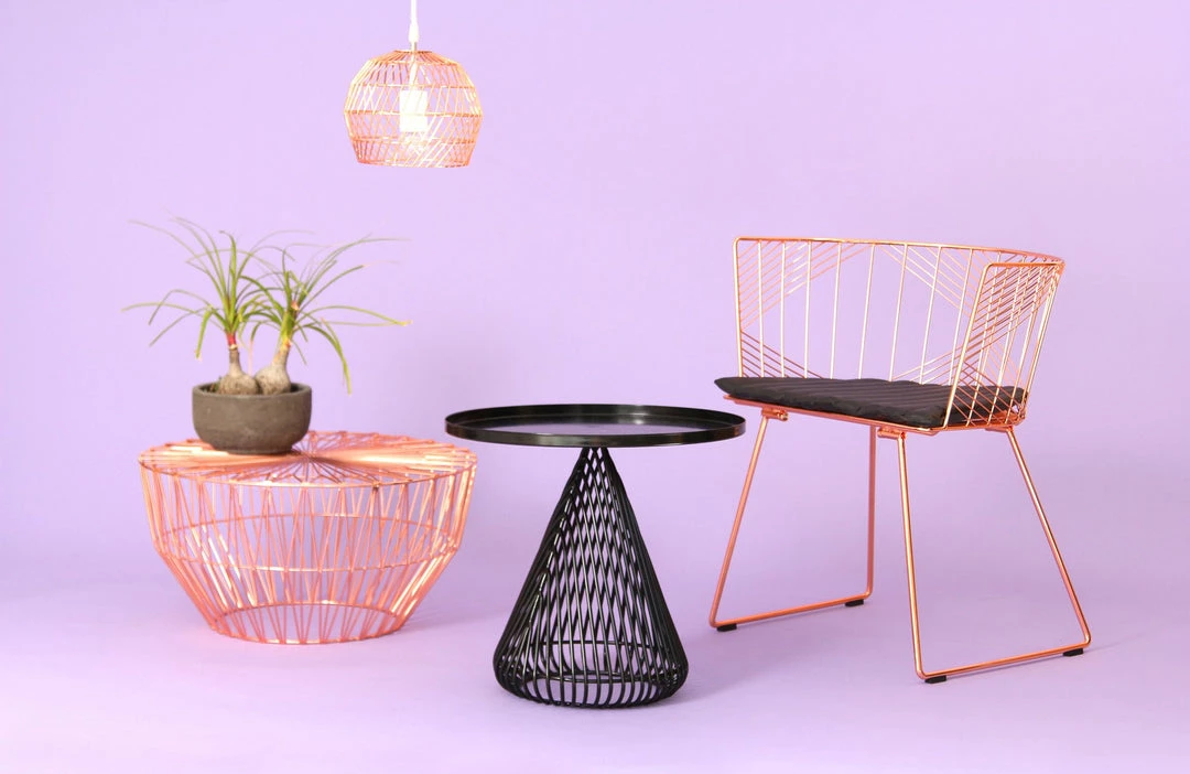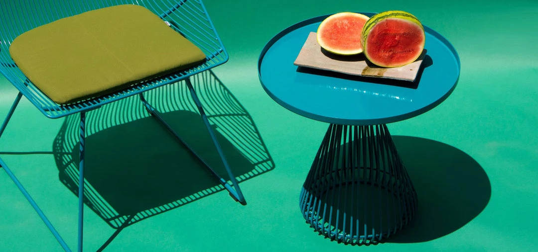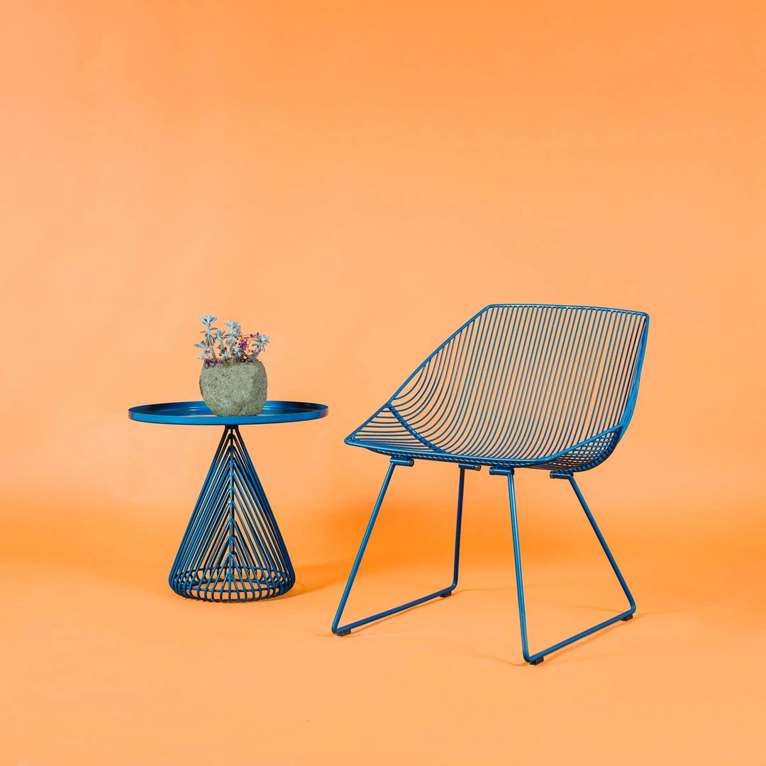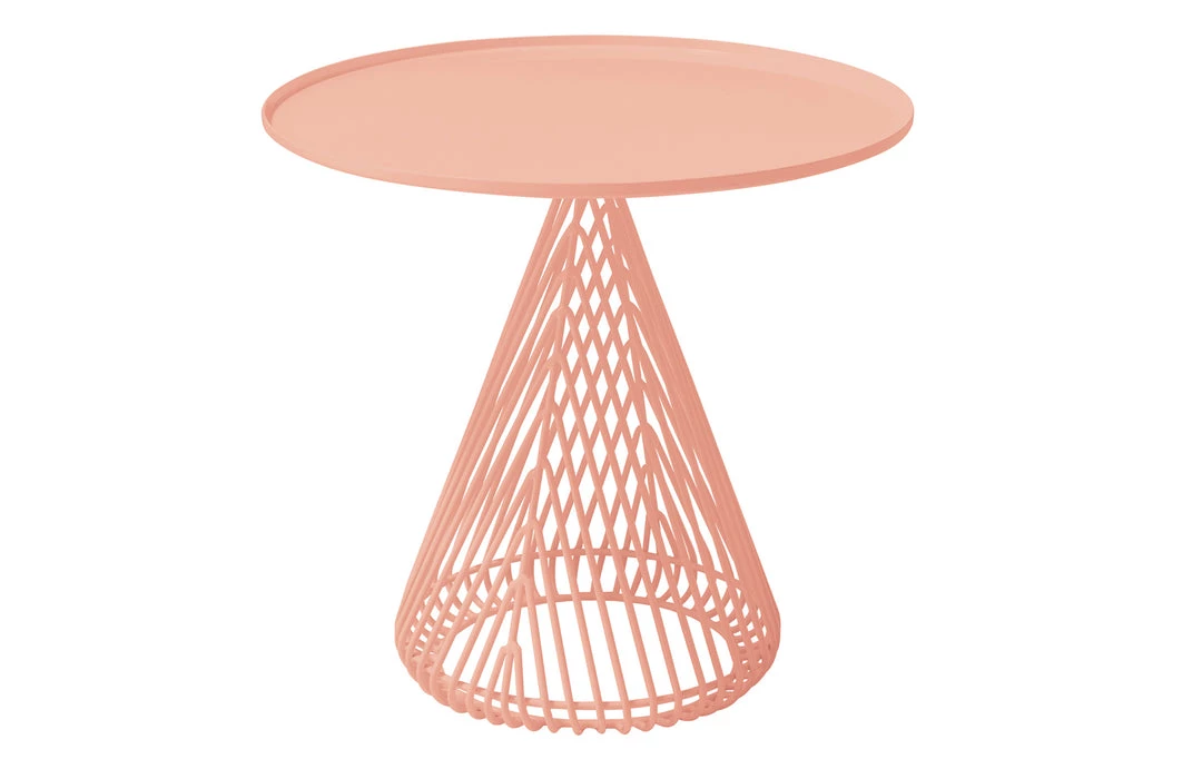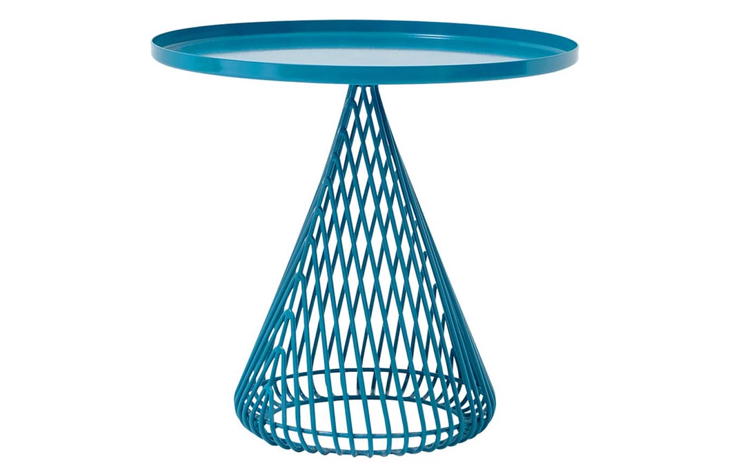 The Cono Table is comprised of a wire base with a metal tray table top. The Cono’s compact base makes it an excellent side table solution for those looking for design with function.