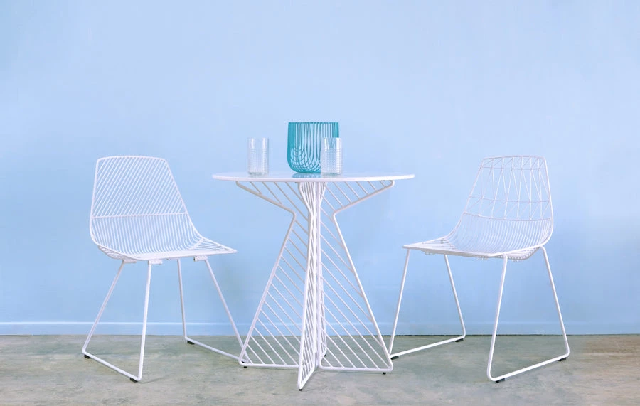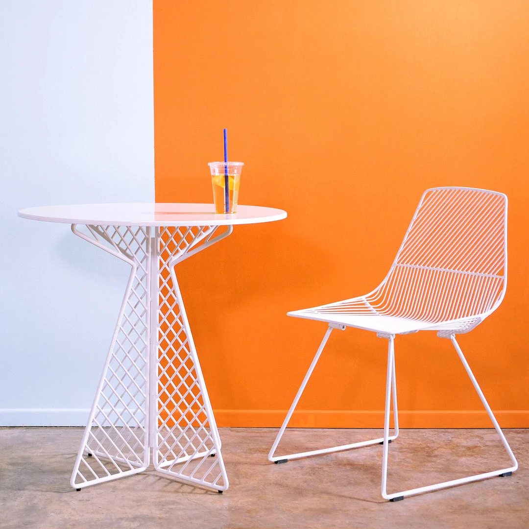 The Lucy Side Dining Chair is part of two worlds – indoor and outdoor. This trendsetting, fashion forward chair is made from galvanized iron and is a series of intricately arranged wires. This chair is stylish and comfortable, perfect for any home.