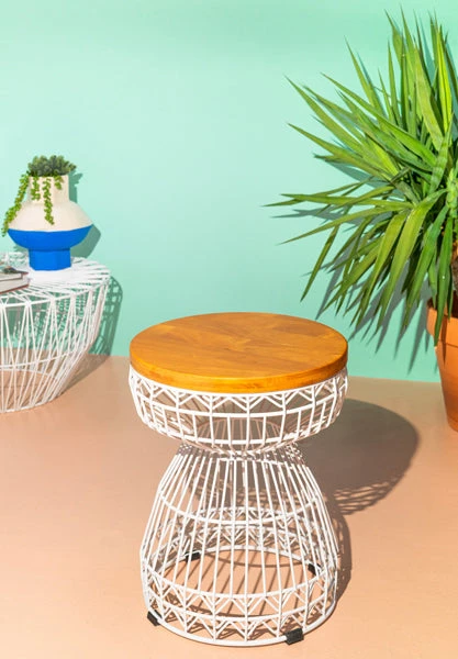 Originating as a custom design for our friends at Sweetfin Poke, the Sweet Stool is the ideal seating wire stool for those who want to save space without sacrificing style. The intricate patterning of the base is paired with a honey wood seat for a durable alternative to a full size chair in any dining or lounge area.