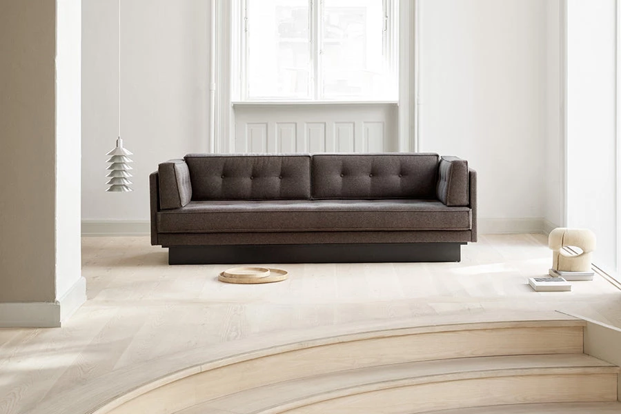 Sofa No. 150, a high quality crafted 3-seater sofa with uncompromising comfort and beautiful from every angle. The low height and voluminous horizontal mattress gives the sofa an unpretentious appearance. The shape of the slanting armrests and low bolsters give the sofa a dynamic character which the fastened buttons help underline. The 68-generation’s sofa of choice has proven to be forever young. Sofa No. 150 is extremely comfortable because it isn’t just a sofa – it can also double as a spare bed. The sofa has removable cushions and is available in a wide range of upholstery options and is ideal for the home as well as the office.