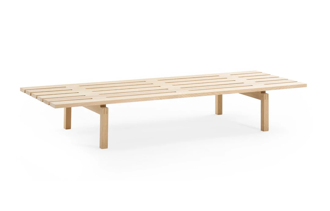 Bedframe No. 117, inspired by classic Danish furniture design and simplicity, features a base of solid wood. The bedframe appears to float above the finger-jointed legs and the key word around the design is quality and simplicity. The horizontal cut-outs allows for air circulation, extending the lifespan of the mattress and providing a cooler sleep. The bedframe is available in two sizes. Bedframe No. 117 was designed in 2015 by Anders Hay and taps into the essence of Danish Modern with its clean lines, functional design and expert craftsmanship.