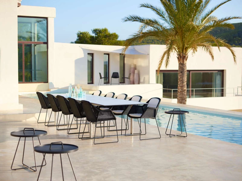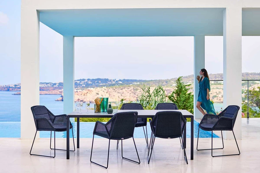 The Breeze dining chair is designed by the dynamic Danish duo STRAND+HVASS. The Outdoor chair combines beautiful and elegant lines with great comfort and requires a minimum of maintenance. The angled legs, as well as the meticulously woven lines all contribute to the end product; a chair that not only looks great, but also doubles as an incredibly comfortable dining chair. Combine the luxurious Breeze chair with for example a minimalistic Pure table, to create a stylish, yet comfortable, modern dining area.
