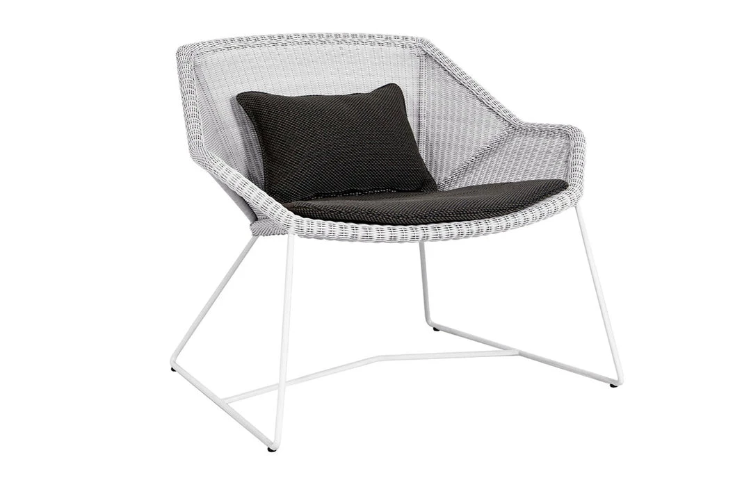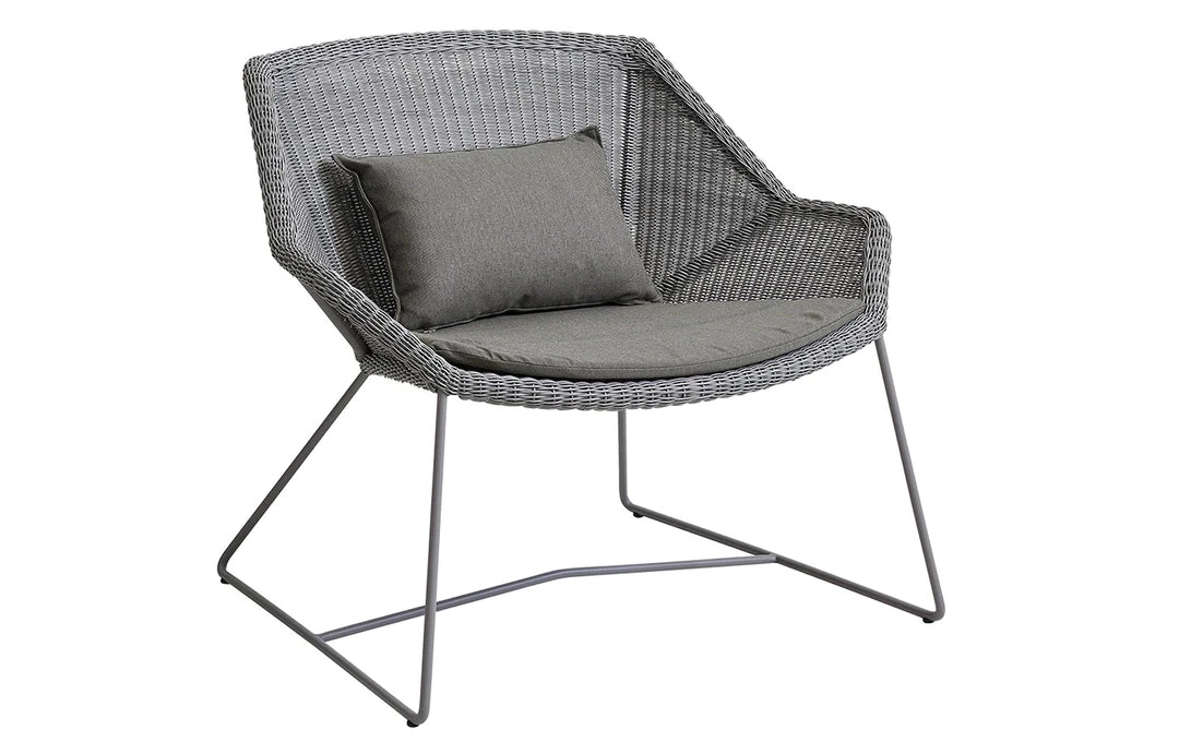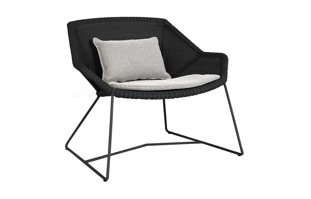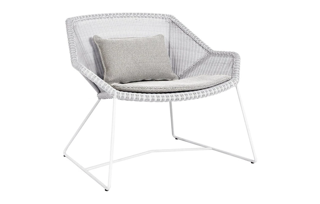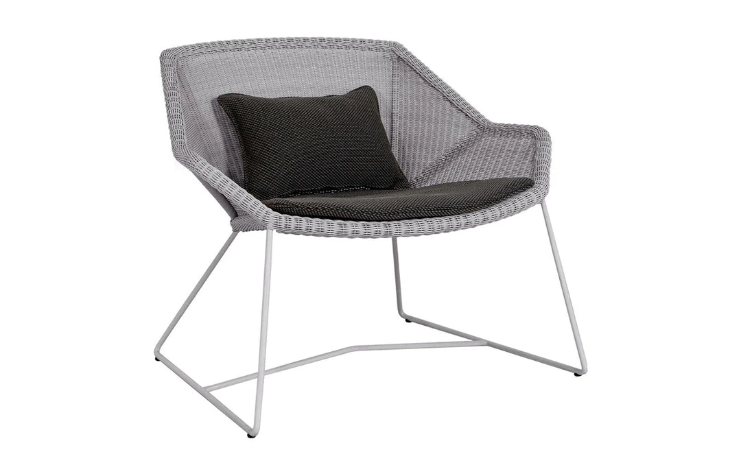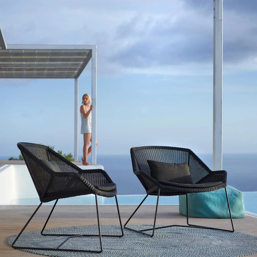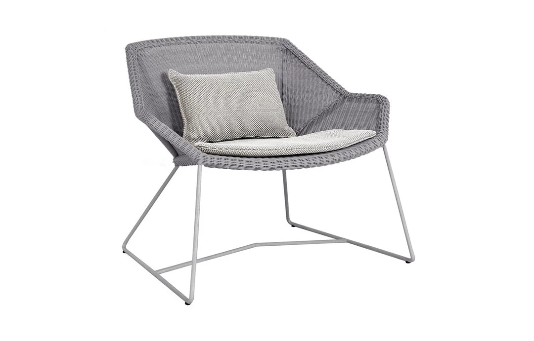 The elegant low inviting lounge chair is built up over a classic wire frame, and it is precisely the bent legs of the chair that provide the design with the unique lightness and elegance. The lounge chair is extremely comfortable. The high quality of the materials used means that the Breeze lounge chair can be left outside in all types of weather and environments, and still remain with low maintenance.