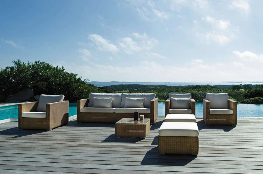 Chester is designed with clear, straight lines for a classic outdoor lounge look. The footstool/low coffee table perfectly accentuates the rest of the series. Chester is the obvious choice if you do not need to be able to assemble the modules for different environments. Chester series offers a comfortable environment that is suitable for both the large roof terrace as well as the garden.