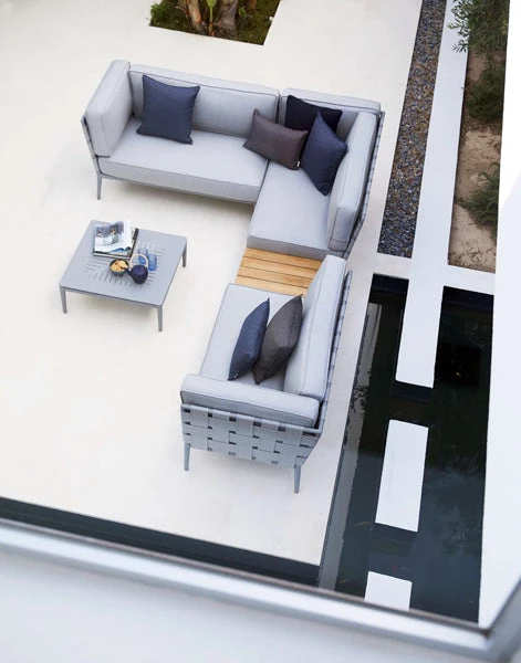 The Conic coffee table gives you an elegant and practical way to connect your Conic lounge modules. The coffee table is easily attached to the different modules, and can be used as a spacing between two modules, or as a nice coffee table. The table has an aluminum frame and is therefore very easy to move around. The Conic coffee table has been designed by the renowned Danish design duo Foersom & Hiort-Lorenzen MDD.