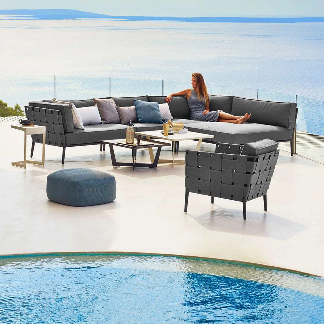 Conic sunbed is designed with an eye for high comfort. By operating a handle on the side of the sunbed, the position can easily be changed. Conic sunbed is available in both Cane-line SoftTouch® and Cane-line AirTouch fabric, both of which contribute to high comfort. The cushions for the sunbed have a QuickDry system built in, which allows the cushions to dry quickly after a downpour. The sunbed requires minimal maintenance and cleaning. Enjoy sunny moments in the garden with Conic sunbed.
