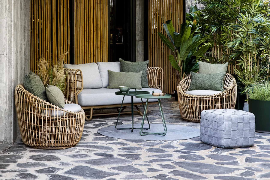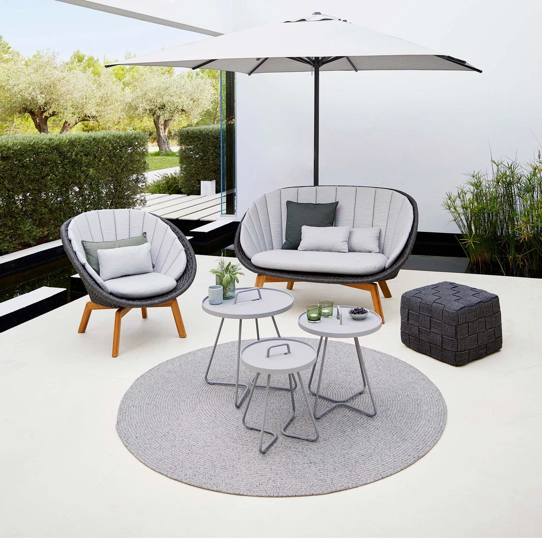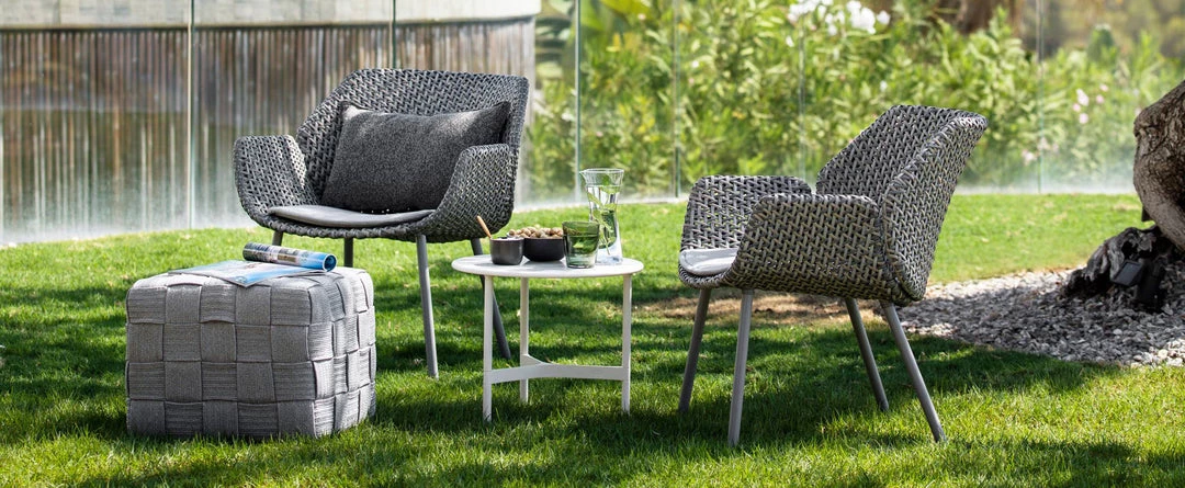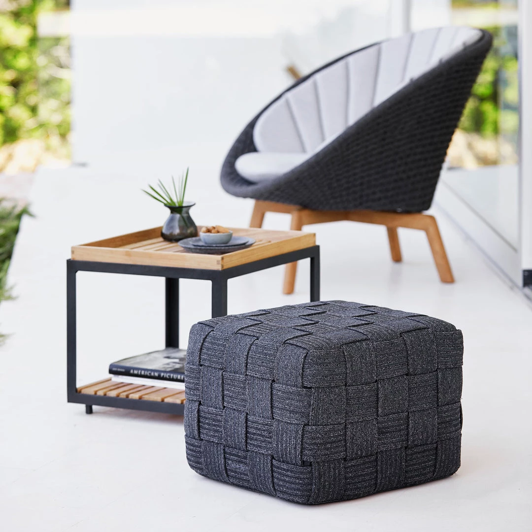 Cube is an outdoor footstool from Cane-line, designed by the innovative Cane-line design team. The footstool is made in the very durable outdoor material Cane-line Soft Rope, with a core in the unique quick dry foam, which employs a special technology that increases the level of comfort and user-friendliness, as the material is dry again just an hour after heavy rain. Cube got its name from the distinctive shape, and the countless squares or cubes included in the design. The Cane-line Soft Rope that covers the Cube, is handwoven in a beautiful pattern, providing texture and elegance to the footstool. Cube can both be used outside on the terrace as well as indoor in your living room. The Cube footstool is the ideal furniture piece that – with its pleasant structure and singular appearance – can enrich and complete your outdoor environment. The dark grey color of the footstool matches both our warm furniture in teak wood and woven materials, or with our neat minimalist furniture in aluminum and ceramic. It is recommended to bring your Cube footstool inside during the autumn and winter season to prolong the lifetime of the product – and easily move it outside with you, when the first spring-sun arrives.