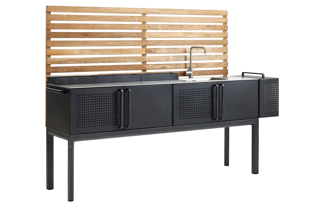 Cane-Line Dining Drop Kitchen Module With Stainless Steel Top & Sink/Teak Wall