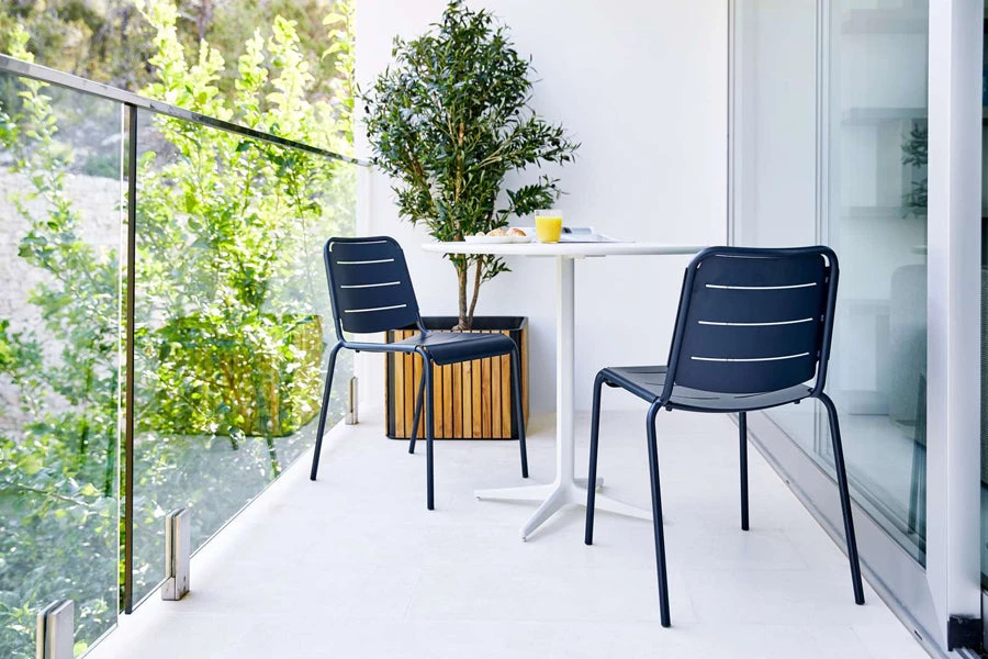 The Drop cafe table combines an edgy table top with a softer shape in the aluminum frame. This provides a completely new style of outdoor tables to our assortment. The ceramic table top forms a resilient and raw surface, inspired by a Nordic lifestyle and with the ambition of designing a stylish yet resistant table.