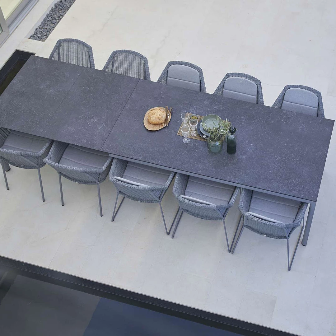 Cane-Line Drop Dining Table W/24″ Extensions In Fossil Ceramic Top