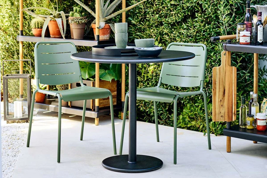 Go is a table “to go” – wherever you like. With its slim and elegant design, the table is ideal wherever a cafe table is required. The minimalist and modern design makes the table a perfect match for any chair. Go allows you to mix and match colors and styles. The Go table is made from powder-coated, all-weather aluminum with a counter weight base, to maximize stability and strength and thereby allow use in all weather conditions. The Go table is designed by the Cane-line design team. The base can be combined with table tops in a range of sizes and designs.