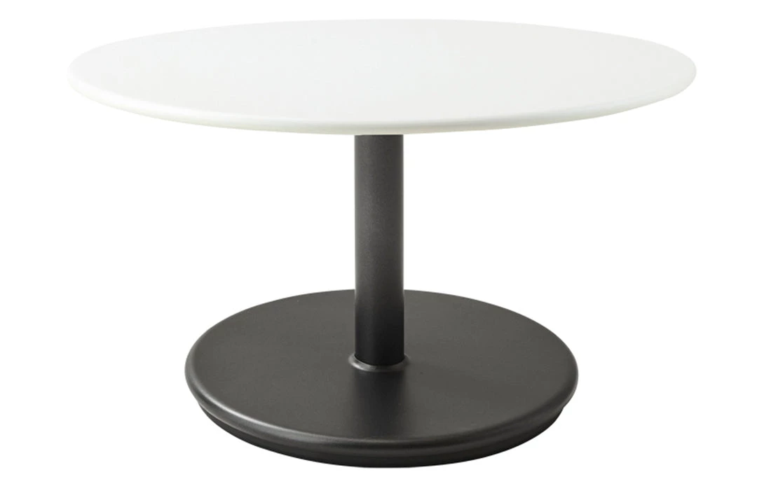 Go has an elegant design and is ideal wherever a coffee table is required. The minimalist and modern design makes the table a perfect match for any chair. Go allows you to mix and match colors and styles. The material is powder-coated, all-weather aluminum and a counter weight base maximizes stability and strength.