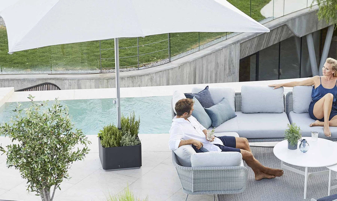 Grow parasol base is a multi-functional and modern design designed to complete your outdoor space. Grow combines a plant box with a parasol base, and provides a unique opportunity to personalize and decorate the base for you parasol. With Grow you get a weatherproof parasol base, which is created for life outside in durable powder coated aluminum. The beautiful minimalistic design creates many uses for Grow, all from plant box to storage to in this case as a parsol base.