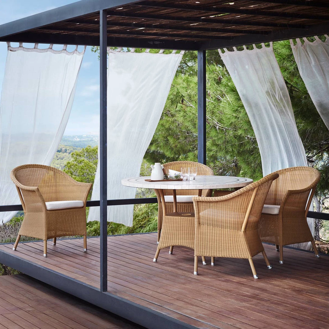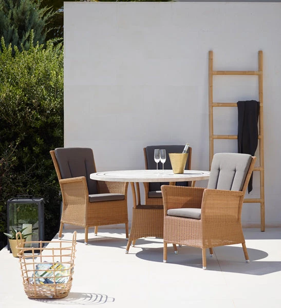 The Lansing group has a classic, country look. The group consists of a spacious dining chair and a 2-seater sofa, offering great comfort while eating as well as providing the perfect relaxing position for long after-dinner gatherings. Lansing is available in Cane-line Weave®.