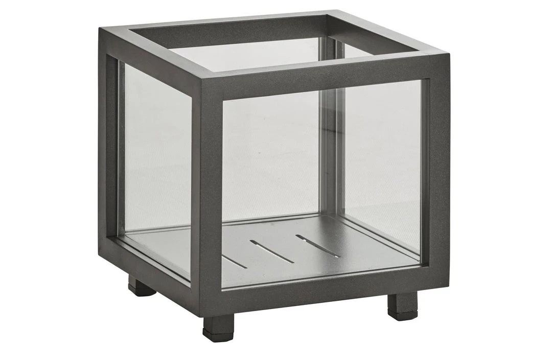 Light box small is a modern open lantern designed by Cane-line design team. The square design gives a firm look to the lantern, which also can be used as a decoration item with plants, herbs or flowers depending of the season. It is produced in tempered glass and lava grey powder coated aluminum, which ensures a resistant surface to knocks and scratches. It can be left outside all year and is easy to clean.
