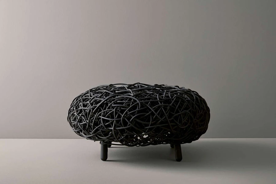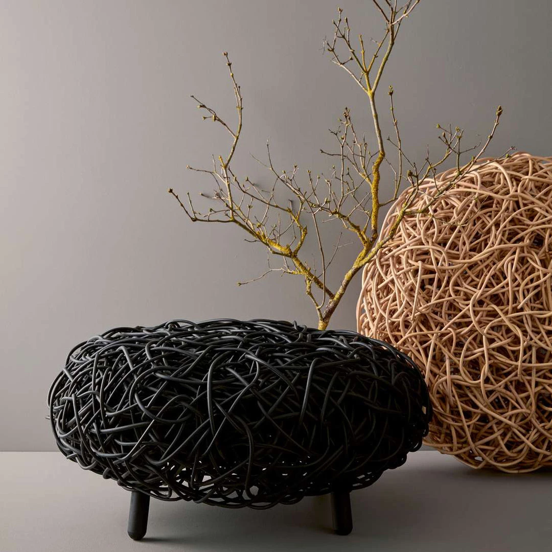 Loop is a modern and urban piece of furniture with a flexible use, either as a piece of art, a footstool, a coffee table or just for decoration. It is produced in rattan and comes in a black masculine version or a more feminine natural version. Furniture produced in rattan can only be used indoors.