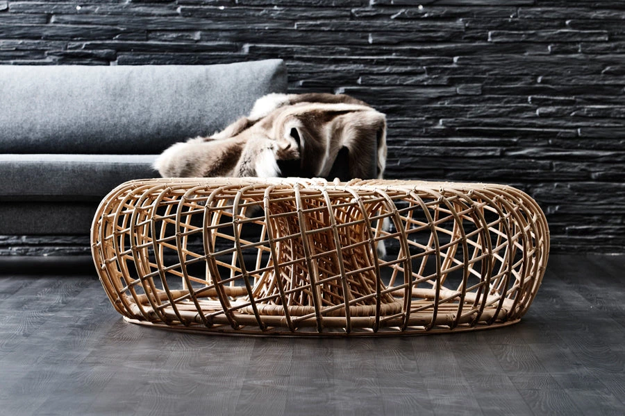 An INDOOR footstool, a coffee table or a multiple-use sculpture made of natural rattan. The astonishing construction is lightweight yet extremely strong. Nest is designed by Foersom & Hiort Lorenzen MDD, who has a love for nature and traditional craftsmanship. Therefore, the Nest footstool is something special, as it is made of the natural material rattan and weaved by experienced rattan-weavers in Indonesia, who has a long tradition for the craftsmanship.
