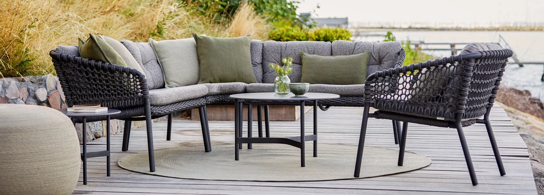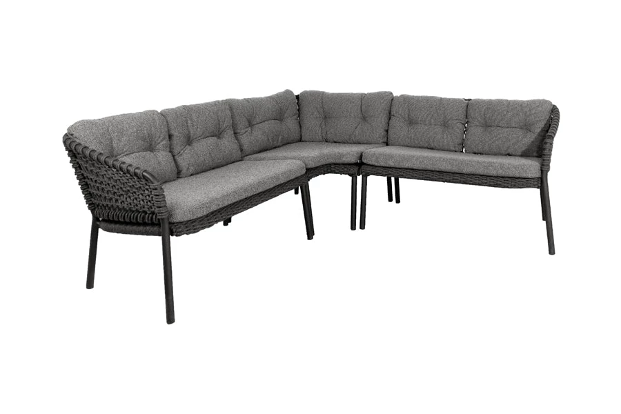 Designed by the Cane-line design team, the Ocean sofa corner module beautifully combines modern design and traditional craftsmanship. The Ocean sofa module is a flexible lounge concept that can be adapted to suit personal needs and preferences. The elegantly constructed lounge concept made with sturdy Cane-line Soft Rope on a strong aluminum frame has an incredibly soft and comfortable cushion in Cane-line Natté or Cane-line Wove. The frame and transparent expression lend an extremely light appearance. The modules are incredibly easy to move around if you want a new lounge area arrangement.