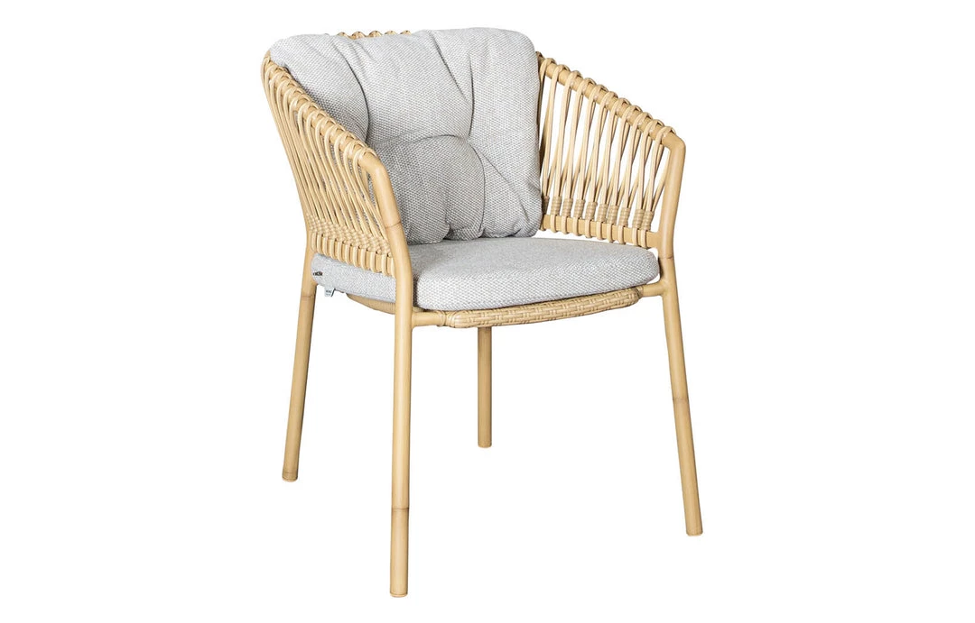 Designed by the Cane-line design team, Ocean combines modern design and traditional craftsmanship. An elegantly constructed dining chair featuring the sturdy weather-resistant Cane-line Weave® on a strong aluminum frame with an incredibly soft and comfortable cushion in Cane-line Natté or Cane-line Wove. The frame and transparent expression lend an extremely light appearance, which also makes the chair easy to move around. Together with the soft seat and back cushion, Ocean offers both exceptional comfort and a visually beautiful aesthetic.