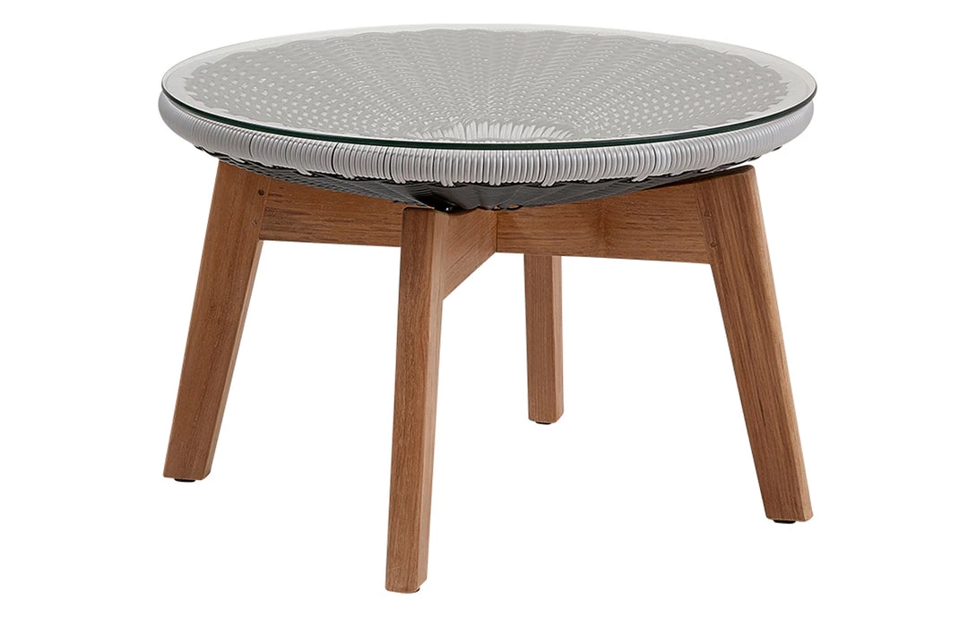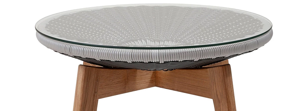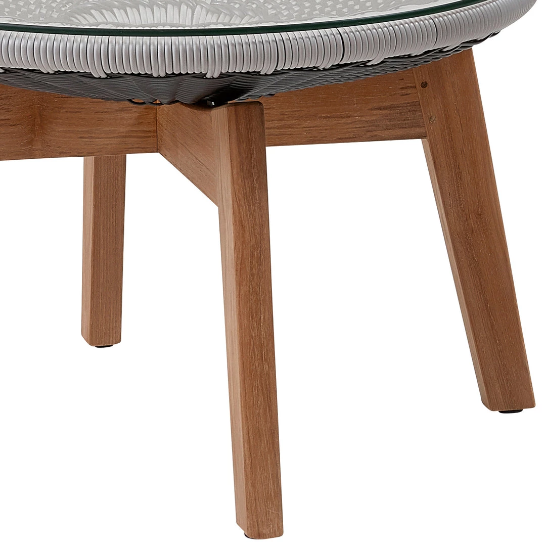 Cane-Line Peacock Glass Footstool/Side Table W/ Teak Legs