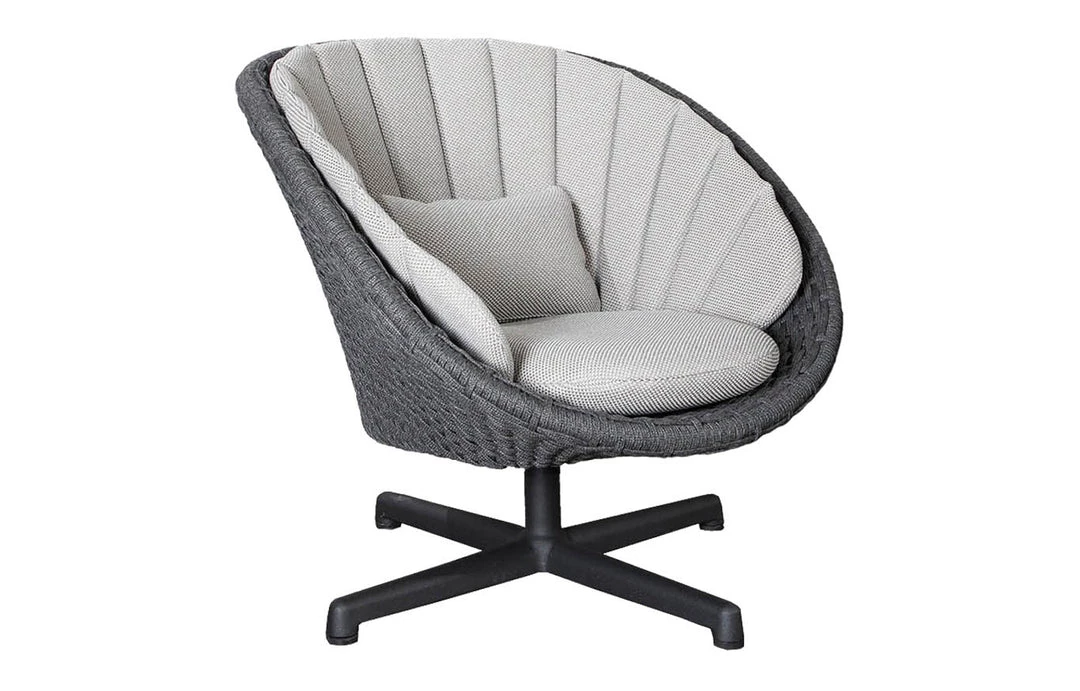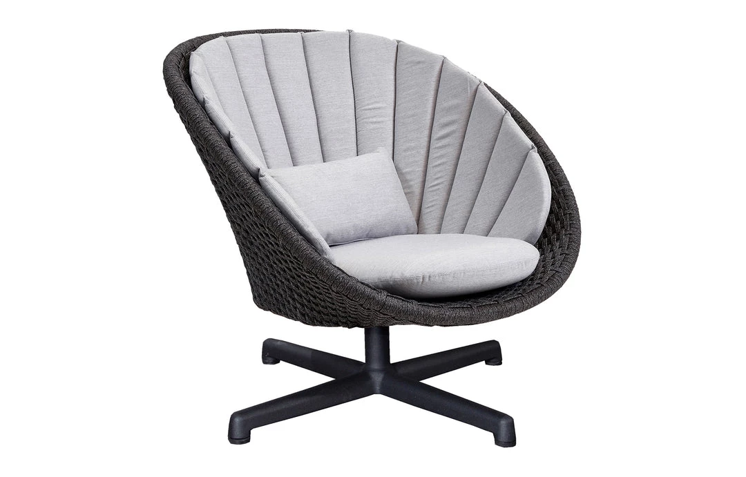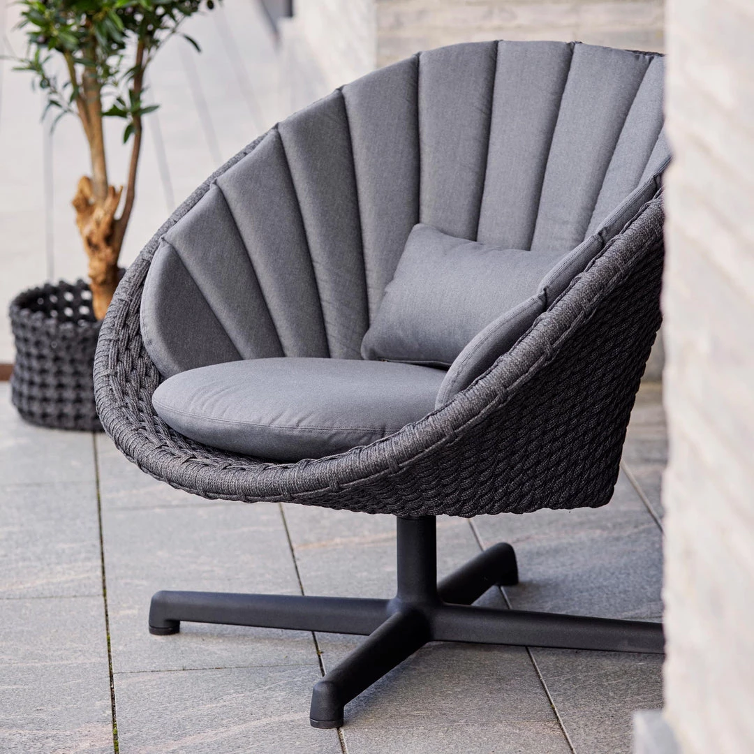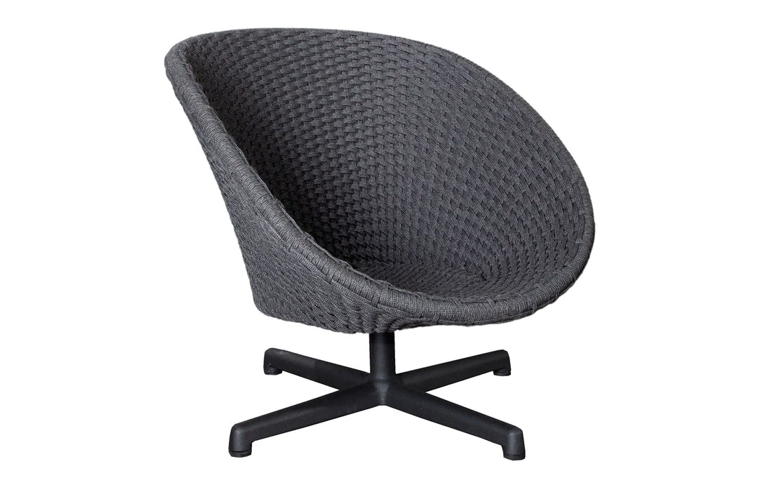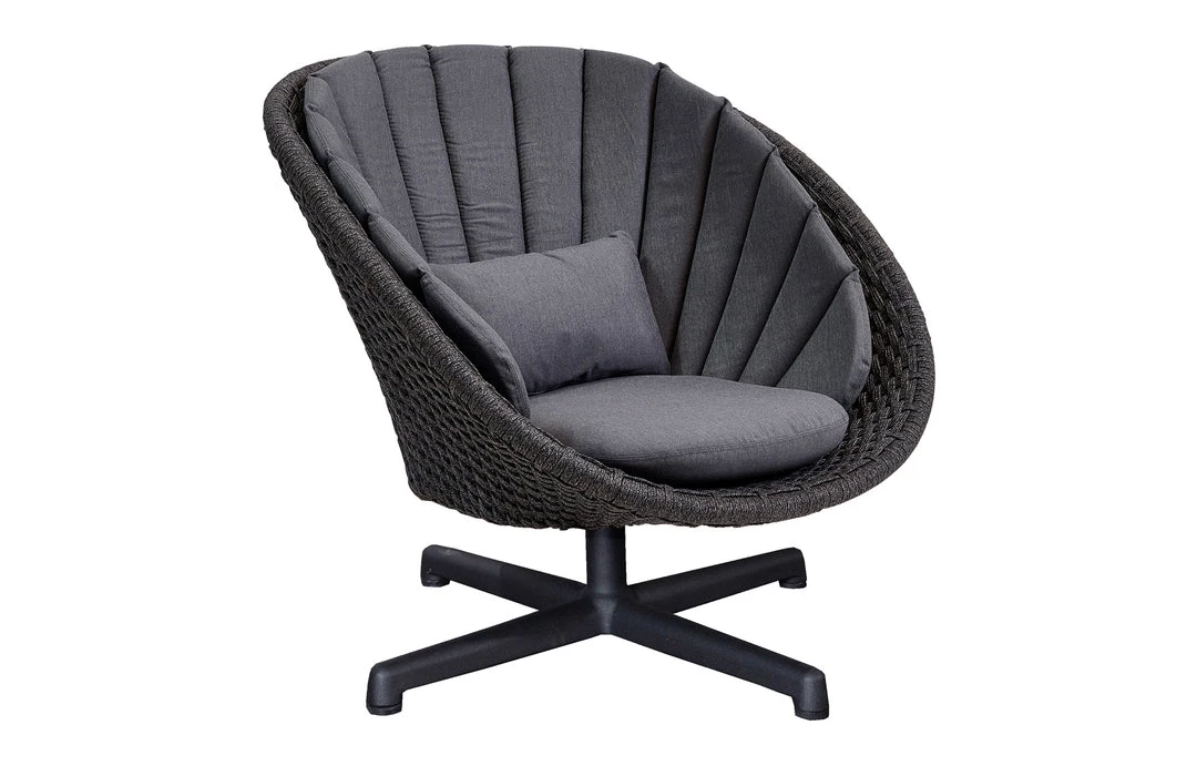 The Peacock lounge chair is a modern piece of furniture designed by Danish designer duo Foersom & Hiort-Lorenzen MDD. A visually beautiful lounge chair with plenty of comfort, ideally suited for the home as well as the contract market. Peacock is manufactured using the soft yet robust Cane-line Soft Rope, which makes it ideal for outdoor use in any climate, as it is both temperature and UV-resistant. The Peacock lounge chair comes with a swivel base which can be rotated 360 degrees.