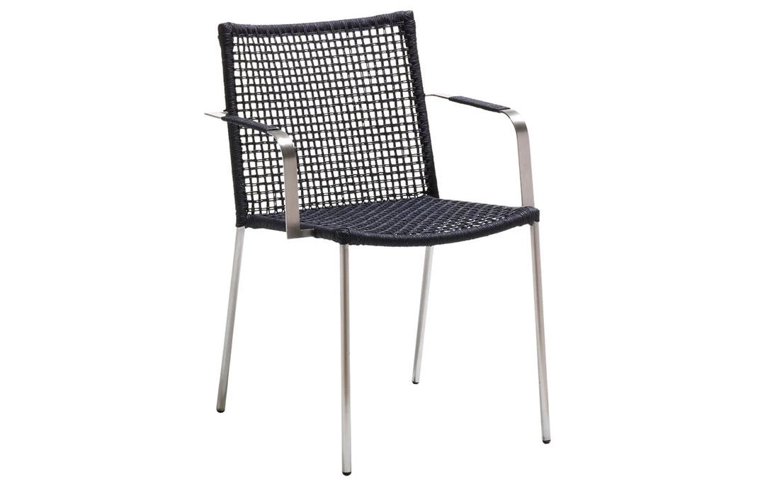 The Straw Stack-able Armchair by Cane-line provides unmatched comfort and will last for a lifetime. This dining chair combines the classic art of weaving with an unfailing modern expression. The woven surface gives the chair a lightweight appearance. The chair is made of innovative rope material and has a stainless-steel table base for rust-resistance. The light weight of this chair also makes it easily movable. You can also stack this armchair to save space. The legs have a straw-like construction, which gives this chair a sleek look.