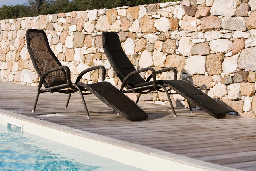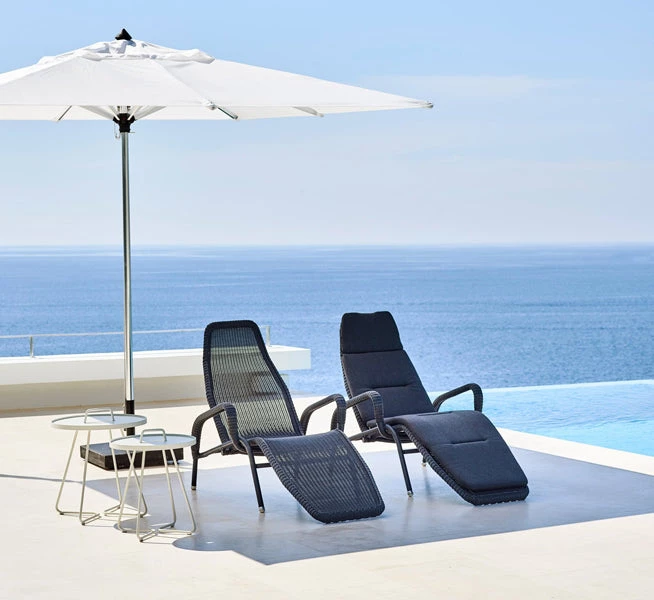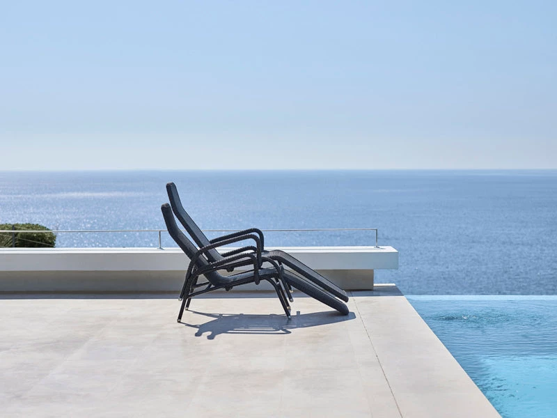 Sunrise is the combination of a sunbed and a sun chair. Sunrise offers an upraised position, which allows relaxation with a book or the like. Then, to recline back, just use your arms as a leverage to ease the chair into a more horizontal position. Sunrise is easily stack able with 5 pieces on top of each other, making it ideal for hotels or other places where storage is a necessity.