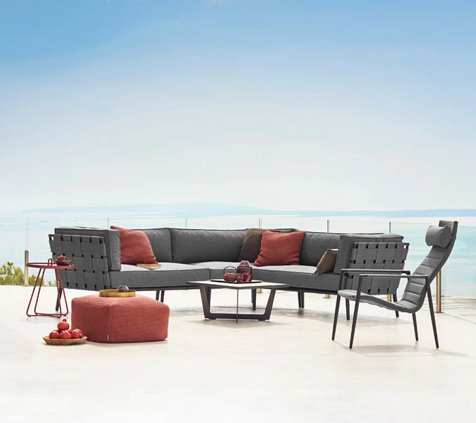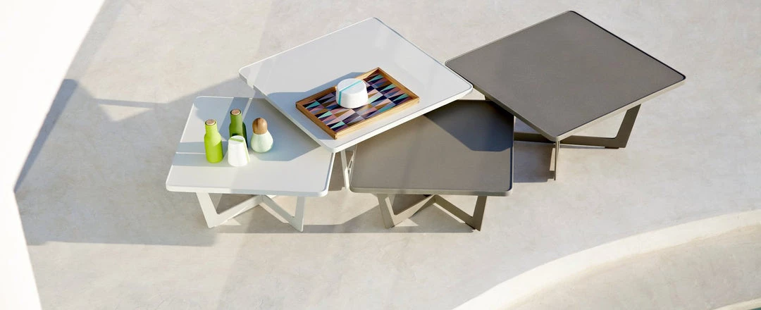 Time-out is designed by Strand+Hvass, who also designed our successful side tables On-the-Move. The concept behind Time-out was to create a series of coffee tables / small tables that offered a contemporary design, but at the same time could fit in many places and together with many types of furniture. Time-out coffee table comes in two sizes and colors; White, Lava grey and taupe. The designers worked a lot with making the coffee tables as optimized for transport around the world. By choosing thick water laser cut aluminum, they succeeded making a stable design that can be delivered in a flat-pack. This idea is truly in line with Cane-lines wishes to create as environmental sound solutions as possible. Time-out can both be used in pairs or as a stand alone table. If Time-out is used outdoor all year around, it is important that rain water is removed now and then, as it can cause marks in the long run.