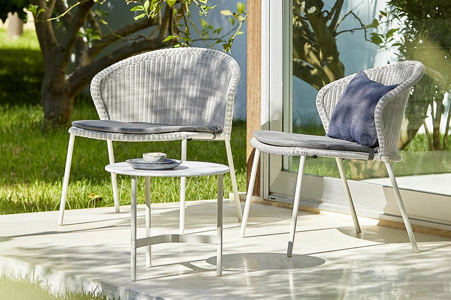 Twist is an elegant, decorative and practical side table for the outdoor environment. The duo behind the design is byKATO, known for their contemporary and detailed design with the sense of high-quality craftsmanship. The Twist table is the perfect addition to the outdoor lounge environment, or as a small side-table to accompany your favorite seat in the garden. Twist is made of a lightweight frame in white powder-coated aluminum, and a tabletop in the durable material solid surface. The frame of the table is simple with a twist, to add an extra dimension to an otherwise simple coffee table. When fall comes, the Twist table can easily be moved indoors to match the interior in the home.