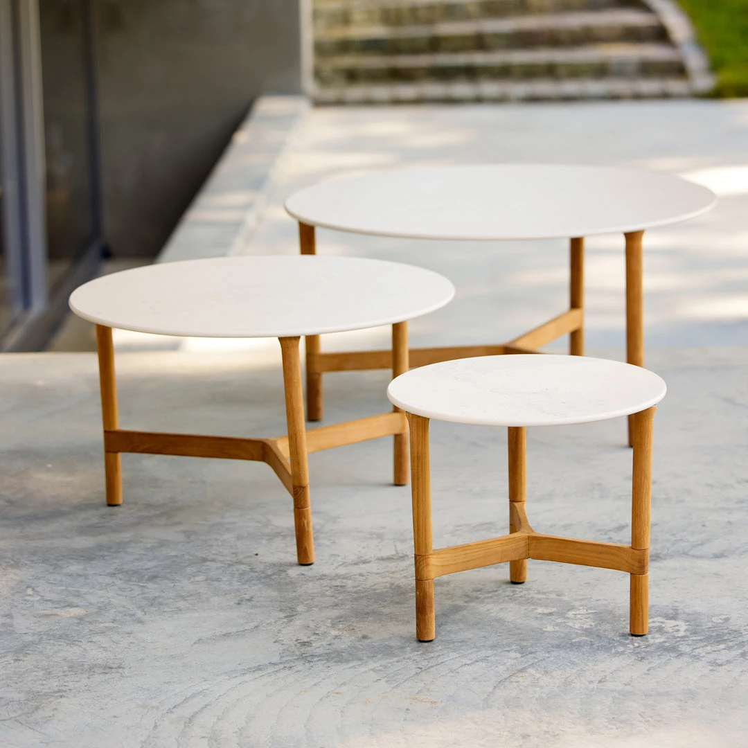 Twist is an elegant, decorative and practical coffee table/side table for the outdoor environment. The duo behind the design is byKATO, known for their contemporary and detailed design with the sense of high-quality craftsmanship. The Twist table is the perfect addition to the outdoor lounge environment, or as a small sidetable to accompany your favorite seat in the garden. Twist is made of a teak frame, and a tabletop in the durable material solid surface. The frame of the table is simple with a twist, to add an extra dimension to an otherwise simple coffee table. When fall comes, the Twist table can easily be moved indoors to match the interior in the home.