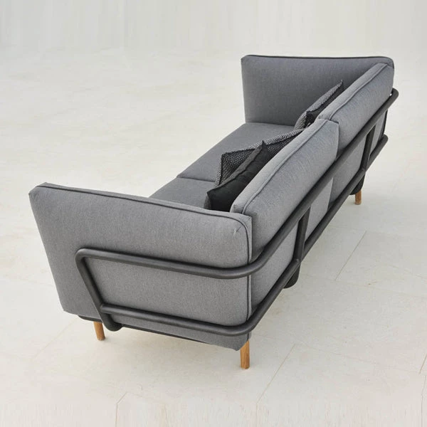 Urban 3-person sofa is a soft and cozy sofa with an urban expression. The sofa is full of contrasts, the teak legs give warmth, the powder coated aluminium gives an industrial look and the cushions provide softness. A unique piece of furniture created for enjoyment and good moments.