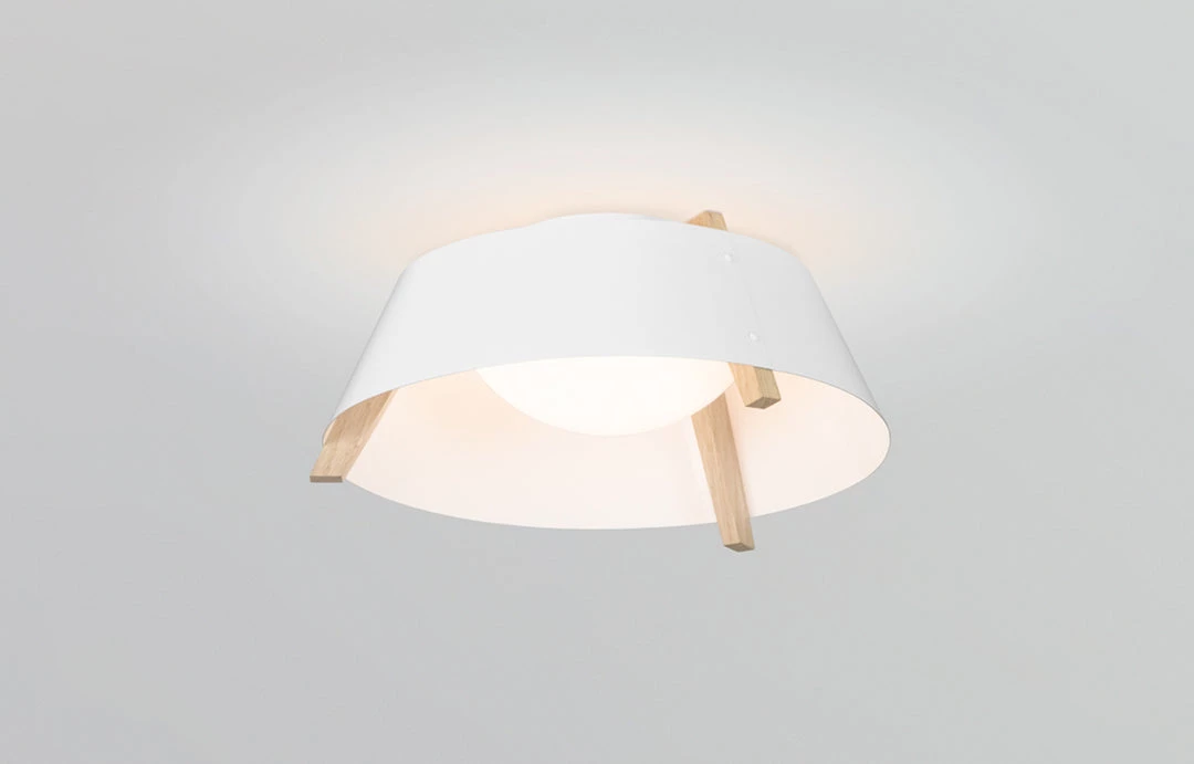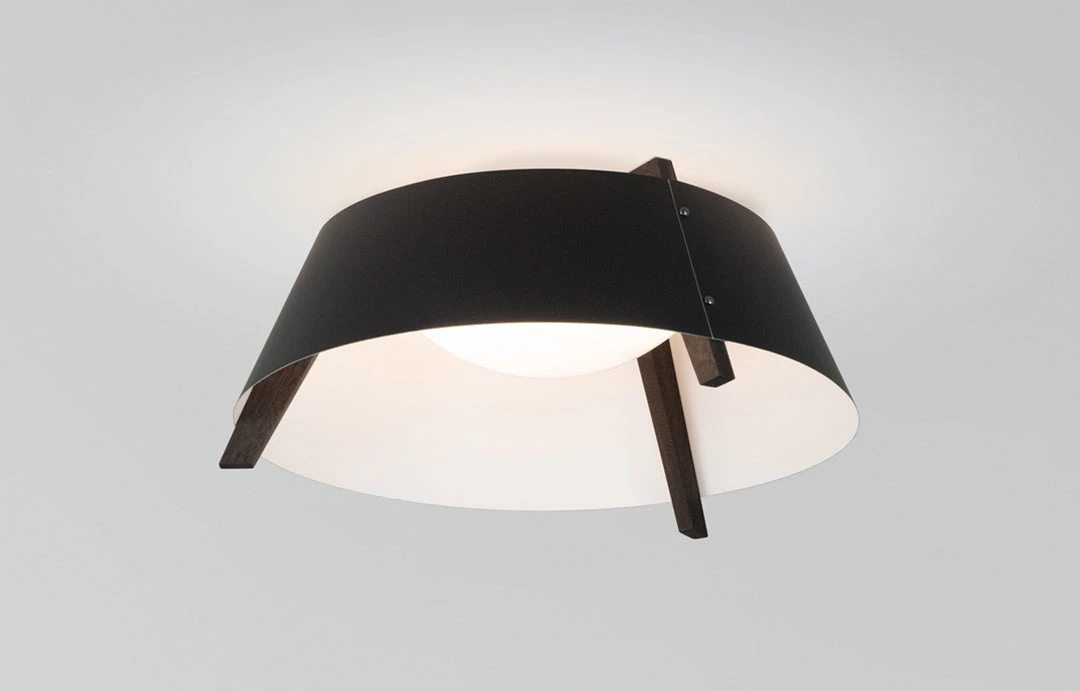Casia is a fresh and innovative approach to a flush mount light fixture. Each carefully selected material plays an integral role in the aesthetic design and performance. The wood arms, metal shade, and glass diffuser combine to create a minimalist form well suited for a modern environment or a more traditional space. The 14” version works well in bathrooms, closets, narrow corridors, and smaller kitchens. The 18” and 22” sizes are incredibly dynamic and work well in different environments such as commercial, residential, and hospitality applications.