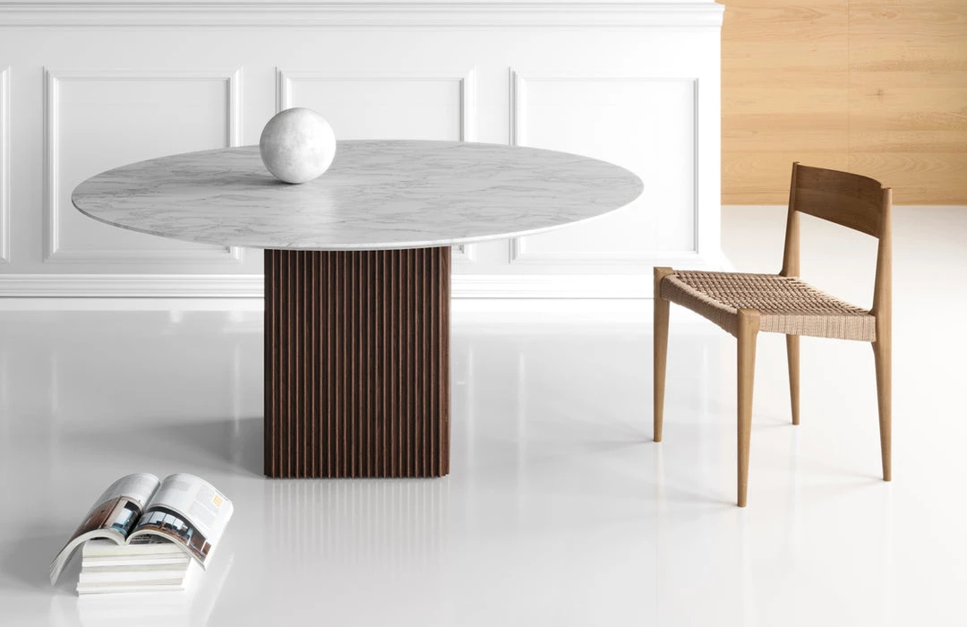 We are proud to announce the launch of the brand new version of dk3´s round TEN TABLE in marble, designed by Christian Troels & Jacob Plejdrup. Fully in line with dk3´’s punch line “True Aesthetics”, this development is the ultimate fusion of some of nature’s finest and most sustainable materials: solid oak (soaped, white-oil, oil and smoked oak) and marble.