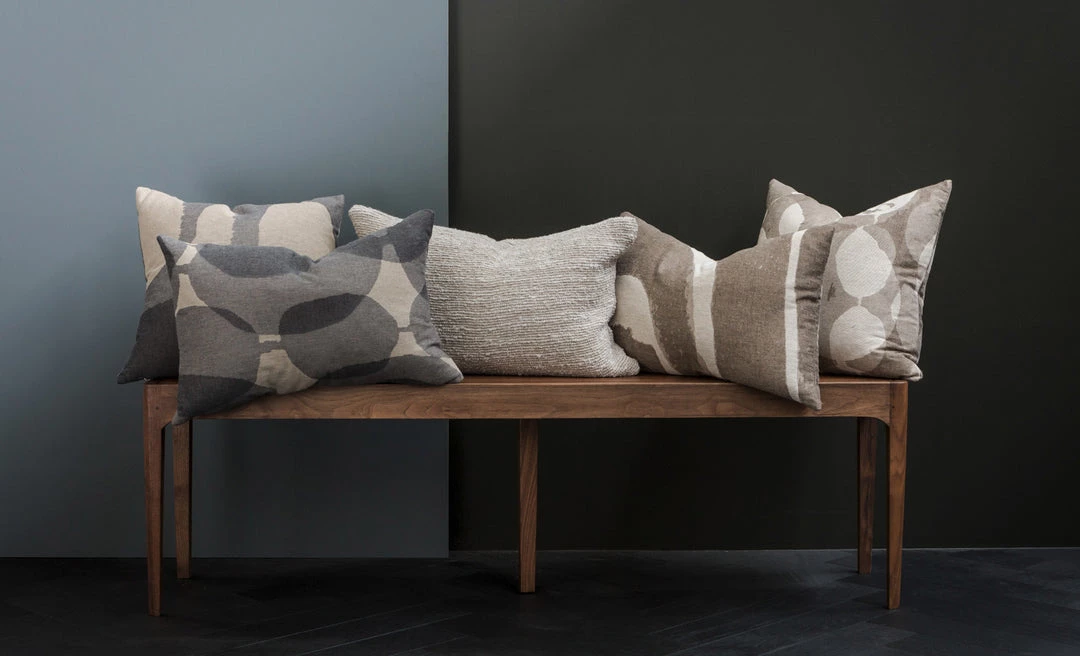 Manufactured in a Belgian family-owned weaving mill, this collection named “Refined Layers” consists of cushions and throws featuring abstract patterns for an understated and original look. They are manufactured from Jacquard fabrics woven mainly from cotton, linen and wool, which blend together to create a play on textures and assorted shaded tones. Mix and match freely with this plush and cozy collection.
