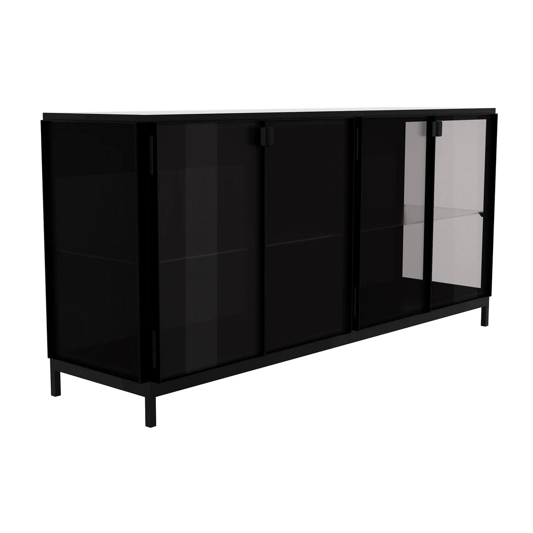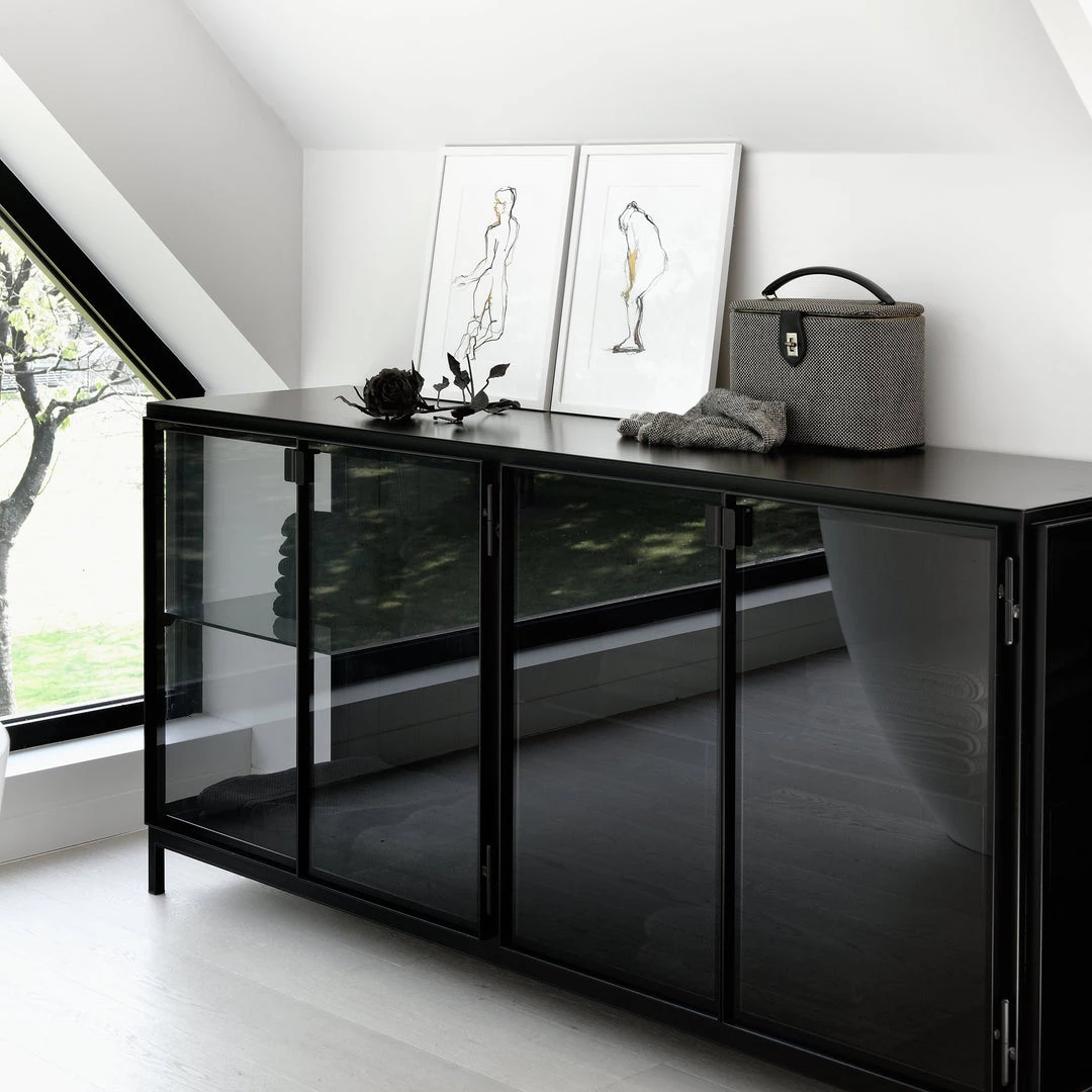 A solid black frame contrasts with the glass surface for a fresh twist on traditional cabinetry. The glass doors are the defining feature, and ample shelving maximizes storage and display options. The Anders collection is an exploration. A journey on which we challenge ourselves to work with new materials yet always remain true to our signature aesthetics.