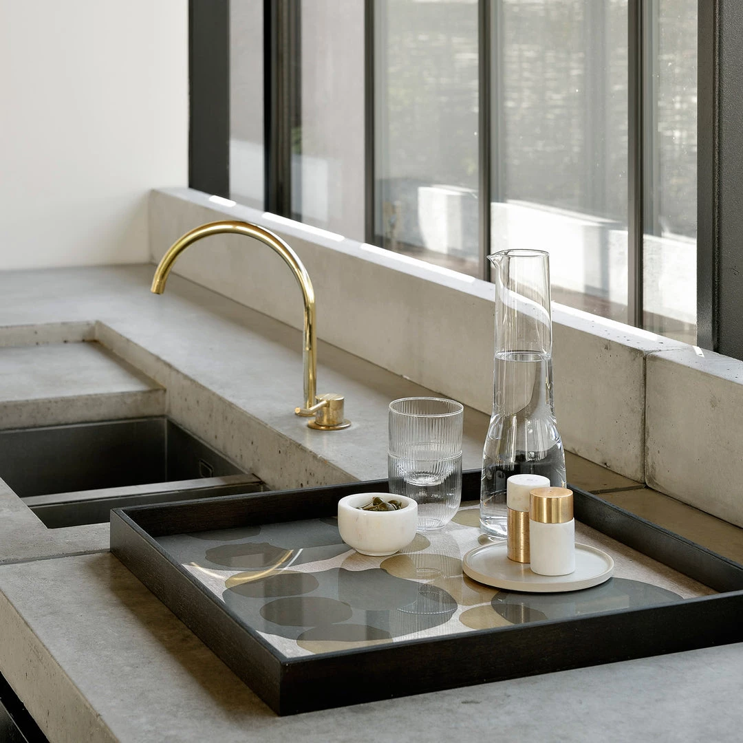 The Translucent Silhouettes collection of trays artfully layers organic dots atop an aged surface, creating a sense of depth and allowing dynamic combinations to blossom. While the overall result is bold, the collection possesses certain lightness conveyed by the delicate inks and pigments.