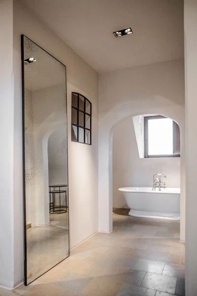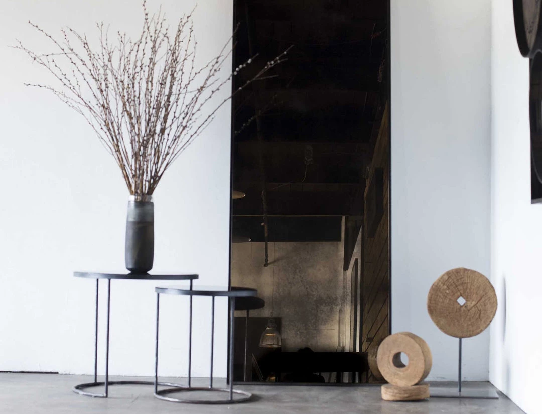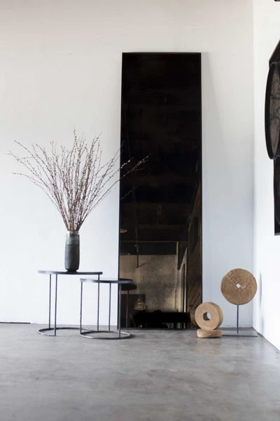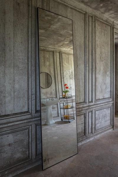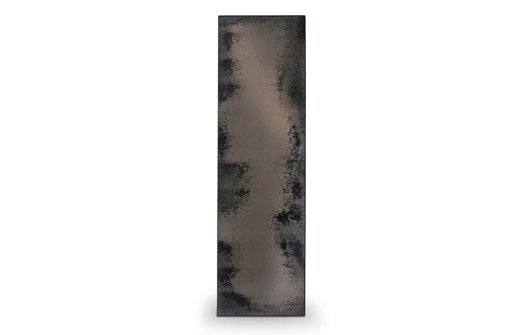 The effortless elegance of a polished aged mirror meets the raw industrial beauty of iron in this Bronze floor mirror. Hang the mirror on its own or display a number of them in your space to make a bold statement.