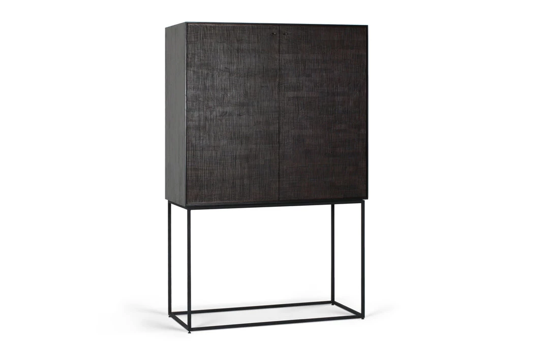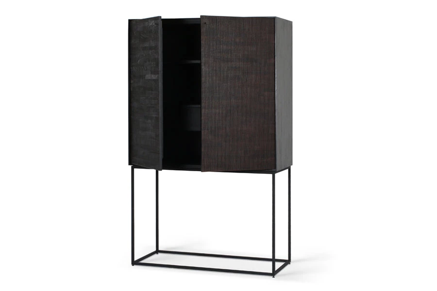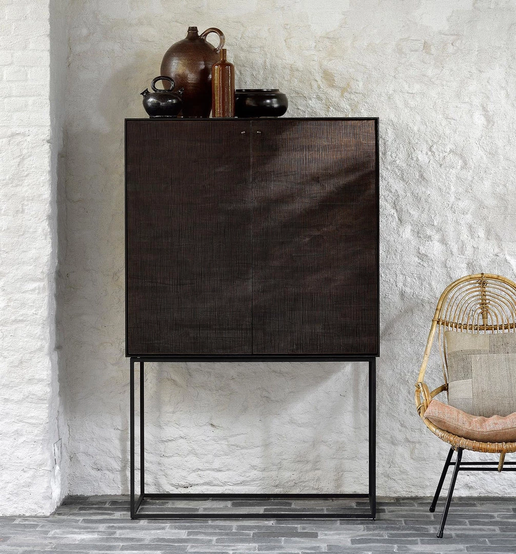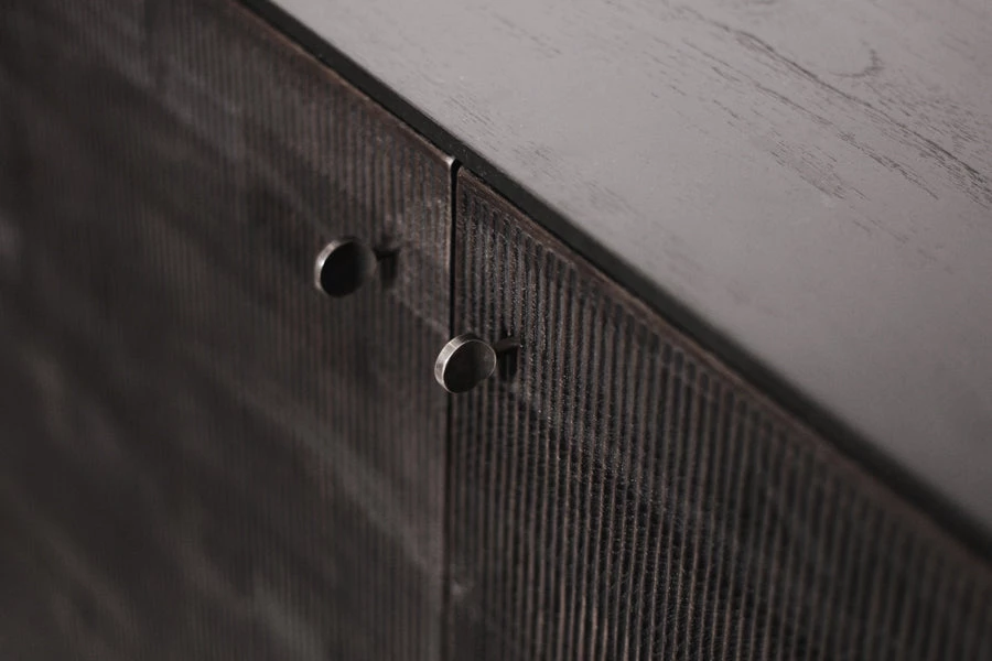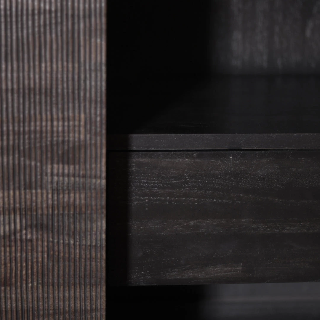 The Grooves storage cupboard is soulful to say the least. Every single line you see is hand carved, making each piece truly unique. Small imperfections are part of the story, even more so: they enhance Grooves’ character. The result is a slightly different surface every time, each with its own rhythm and dynamics. The beautiful dark tinted teak continues on the inside, where shelves and drawers will hold your most cherished objects.