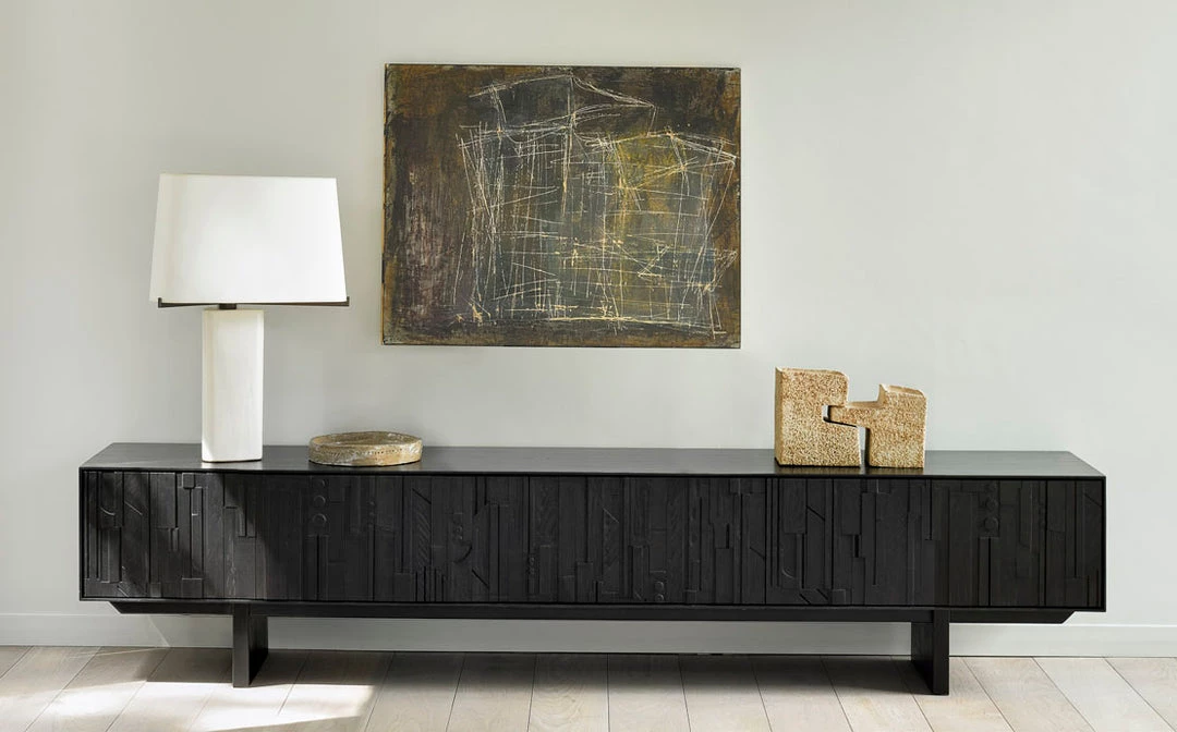 It all started with a happy incident. Inspired by the remaining offcuts from our factory designs, the layered wood pieces of the Mosaic TV cupboard form a rhythm, reminiscent of the partition of a pipe organ. Deeply influenced by music within his creative process, Alain van Havre offers a renewed translation of his obsession for movement.