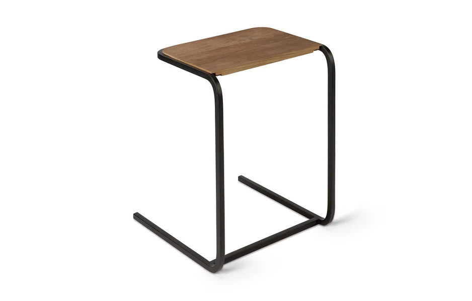 The N701 side table was designed specifically for the popular homonymous sofa. Its thin metal legs slide under the sofa smoothly, while the teak table top provides more surface. Designed by Jacques Deneef.