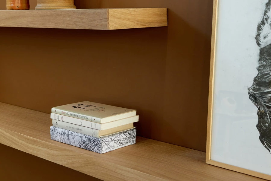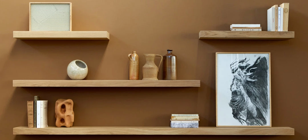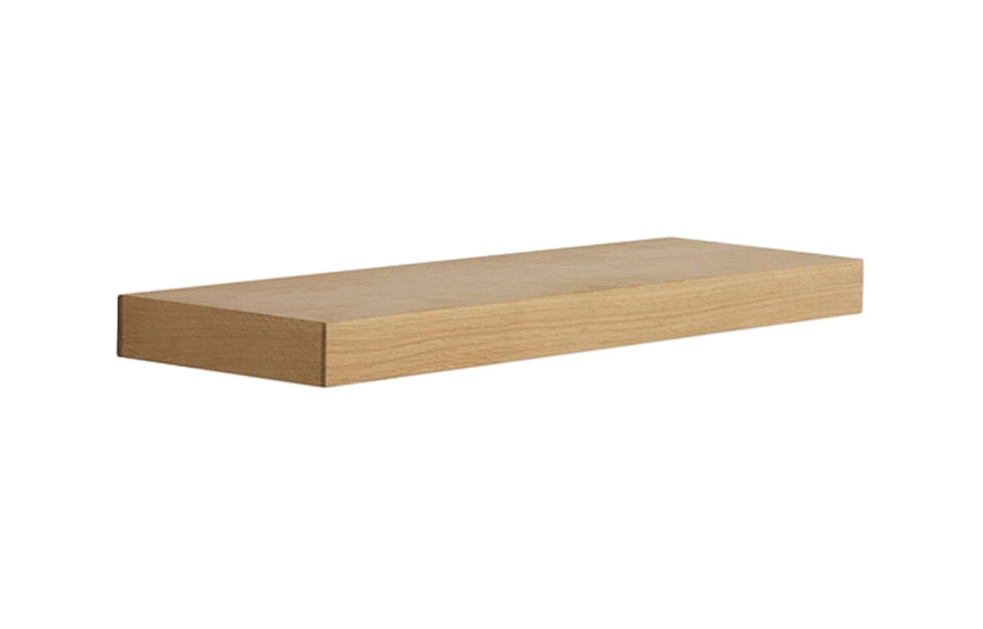 This elegant wall shelf, crafted from European oak, is the perfect solution for extra shelving needs. Featuring simple, clean lines, they can be aligned or stacked on the wall in your preferred combinations. Comes with a flush-mounted stainless steel keyhole bracket for easy installation.
