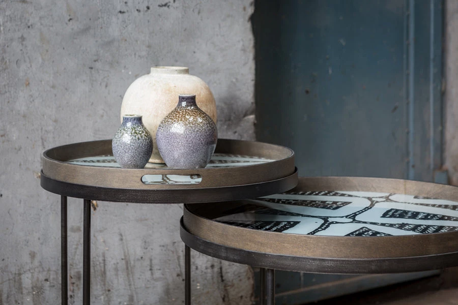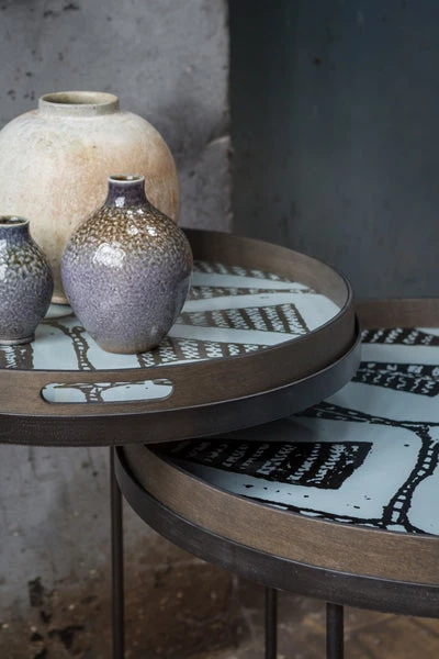 The tray table is one of our most versatile pieces: while it serves its function as a side table, its ability to adopt different trays allows you to mix or match various colors and patterns, creating a personal piece that is uniquely yours. And of course, a set equals twice the fun and creativity.