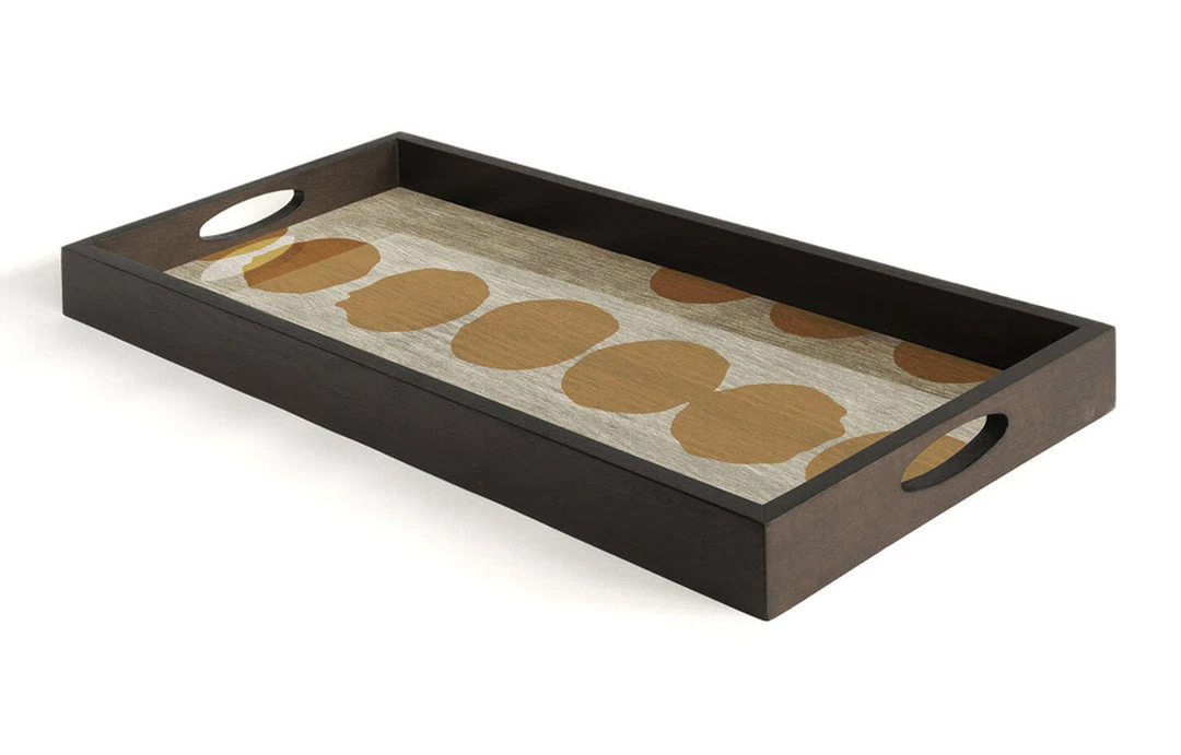 The Translucent Silhouettes collection of trays artfully layers organic dots atop an aged surface, creating a sense of depth and allowing dynamic combinations to blossom. While the overall result is bold, the collection possesses certain lightness conveyed by the delicate inks and pigments.