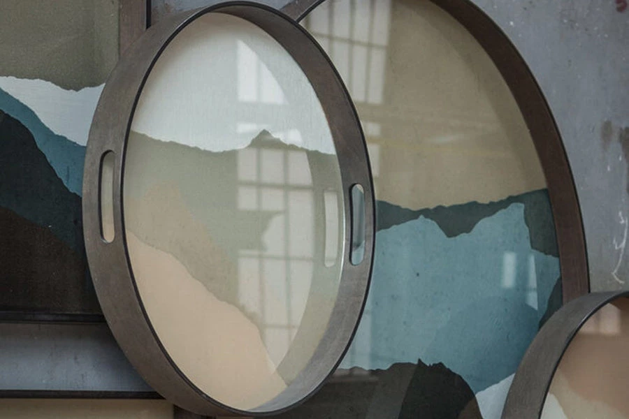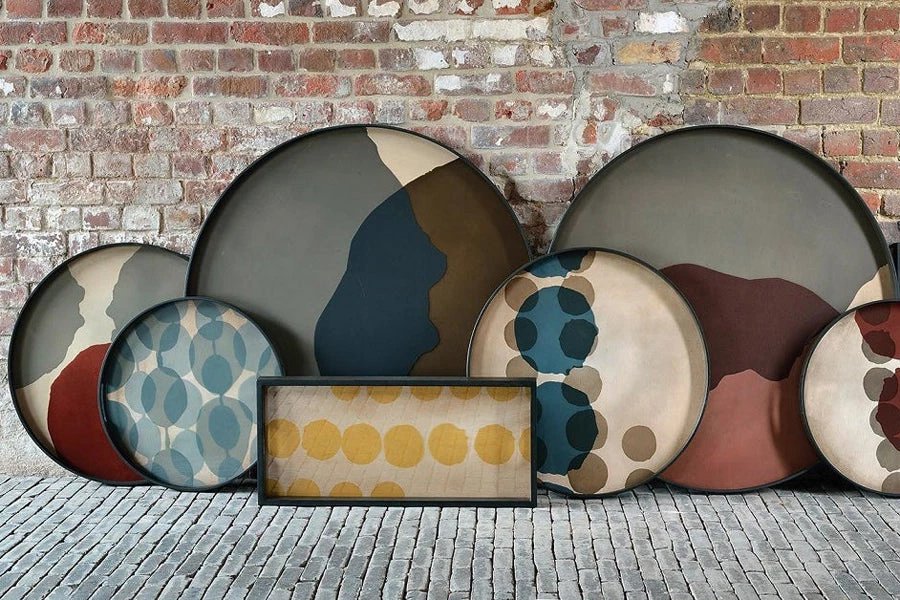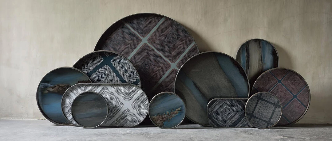 The Translucent Silhouettes collection of trays artfully layers organic dots atop an aged surface, creating a sense of depth and allowing dynamic combinations to blossom. While the overall result is bold, the collection possesses certain lightness conveyed by the delicate inks and pigments.