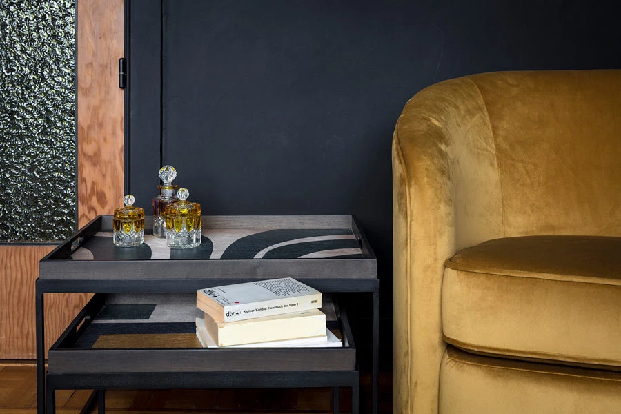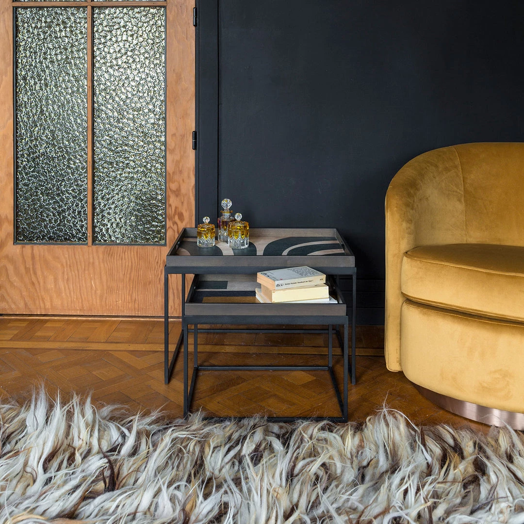 The tray table is one of our most versatile pieces: while it serves its function as a coffee table, its ability to adopt different trays allows you to mix or match various colors and patterns, creating a personal piece that is uniquely yours. And of course, a set equals twice the fun and creativity.