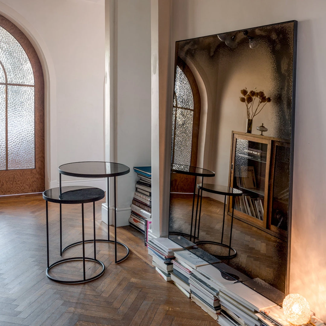The effortless elegance of a polished aged mirror meets the raw industrial beauty of iron in this Bronze wall mirror. Hang the mirror on its own or display a number of them in your space to make a bold statement.